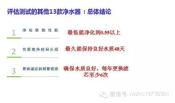 通过以上的试验,我们可以知道,选择净水器不仅要看它的净化效能,还要看净化效能的持久性,以上试验的净水器中,有大部分在一周左右就要更换滤芯,有些在一个月左右也要更换滤芯,频繁更换滤芯无疑会增加用水的风险和用水成本。总的来看价格偏低的净水器净化质量都不是很高。