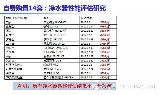 滨特尔、道尔顿、百诺肯、三菱丽阳、3M、东丽比诺、安利益之源等其它品牌净水器继续测试。