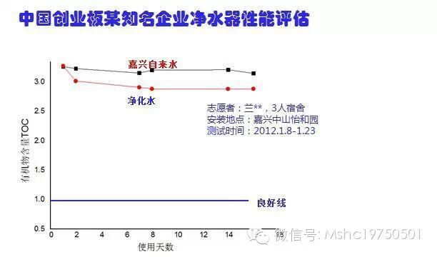 以上试验数据显示:复旦水管家纳滤 MR0在10天的试验期中水质仅维持在基本合格,且不稳定。