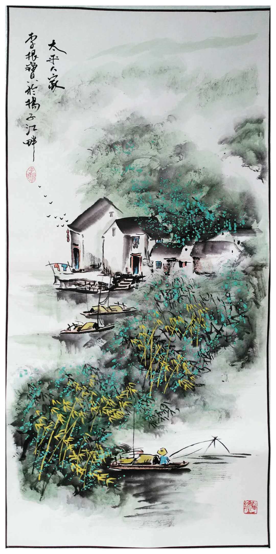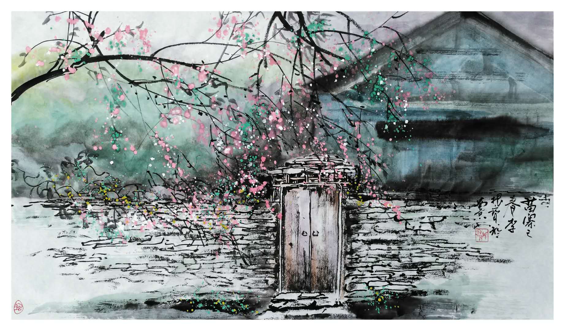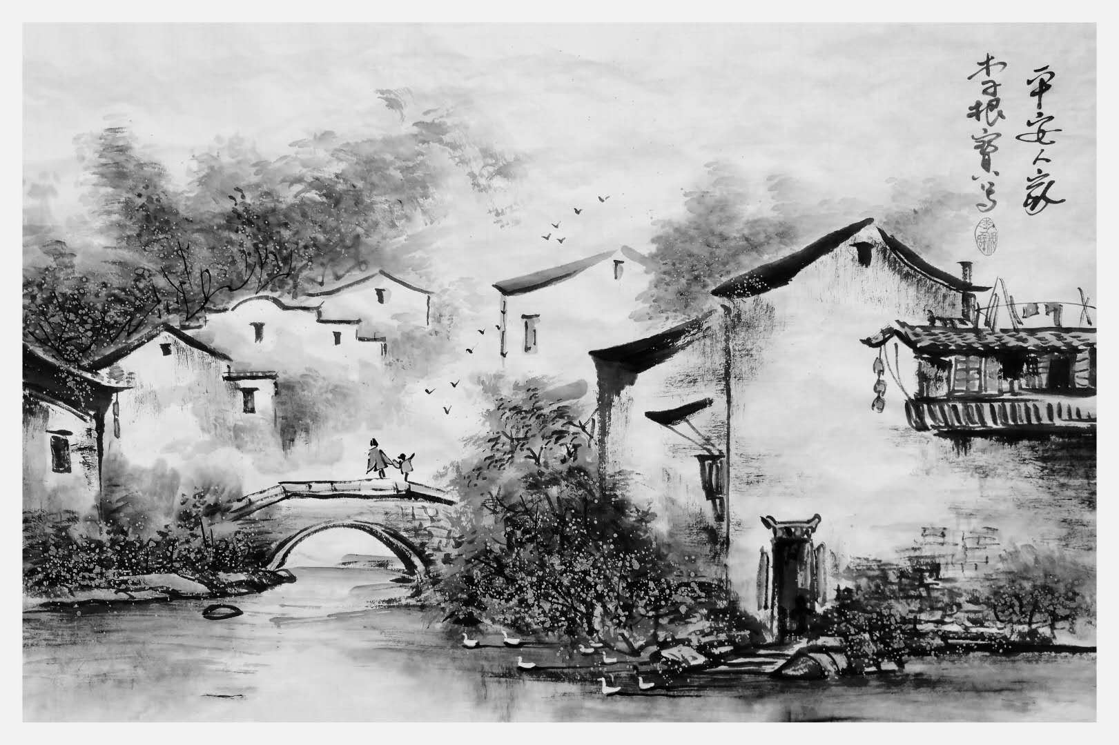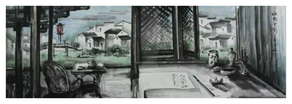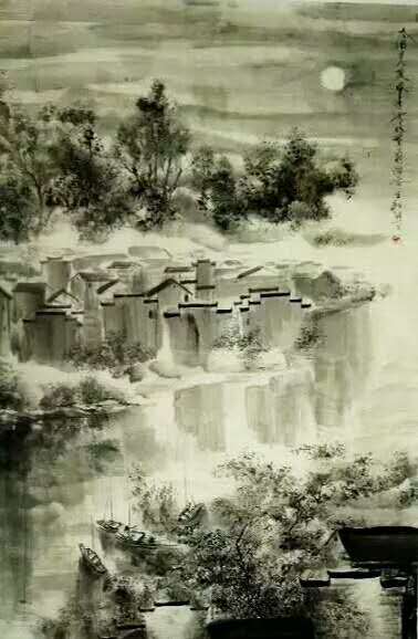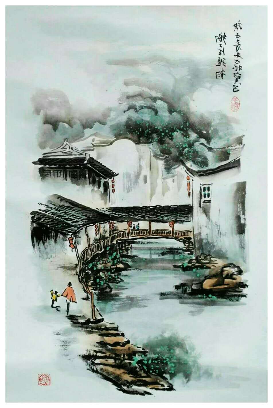 除了水墨山水画,李根宝的江南水乡系列同样撼人心魄。他画的水乡小品构图深远,表达出咫尺千里的奇效。密而有疏,实而有虚,三者纵横穿插布局,使得画面生动,情景交融!