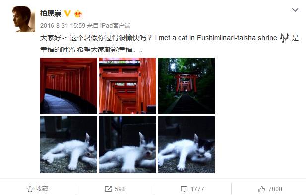 其实柏原崇跟国内粉丝的互动还蛮多的,2013年底就来开微博了。