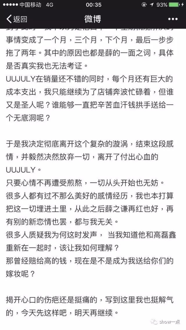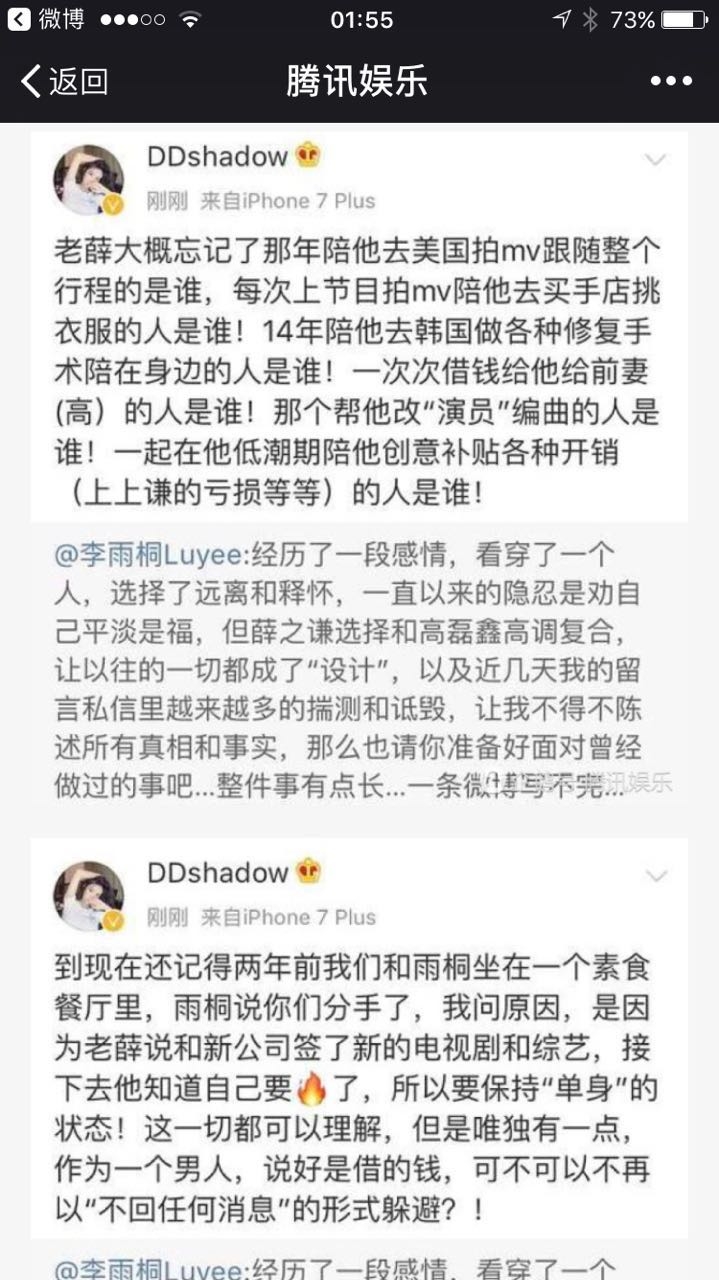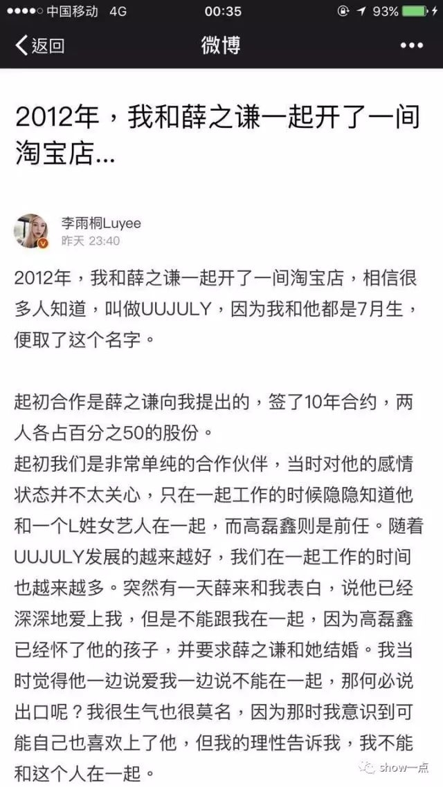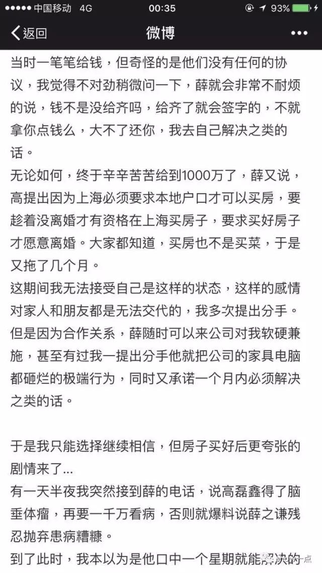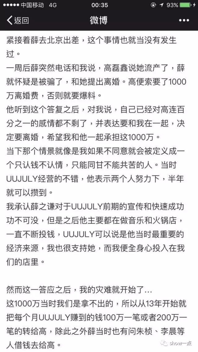 3、一周后李雨桐接到薛之谦电话,说高磊鑫流产,索要1000万离婚费,不然就爆料。薛之谦怀疑自己被骗婚,希望能和李雨桐共同承担1000万离婚费。