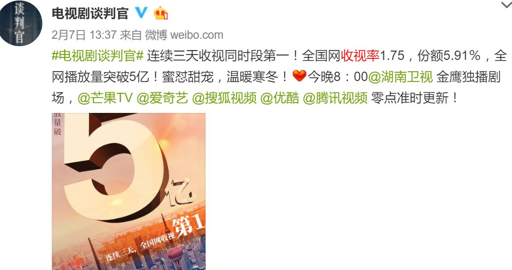 看收视率就知道了,临时上档(真的很临时),播了三天,连续三天都是全国网收视同时段第一▼▼▼