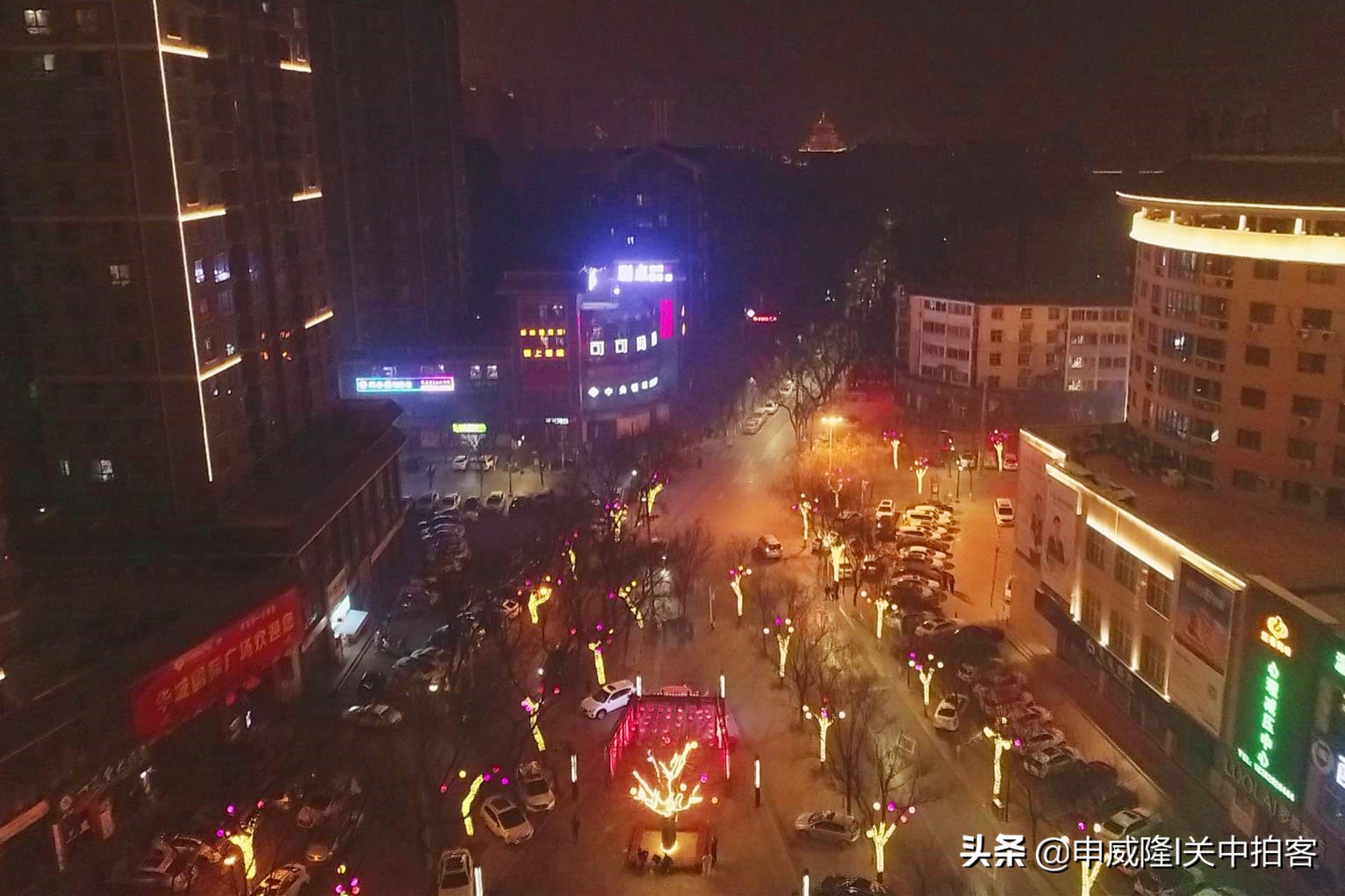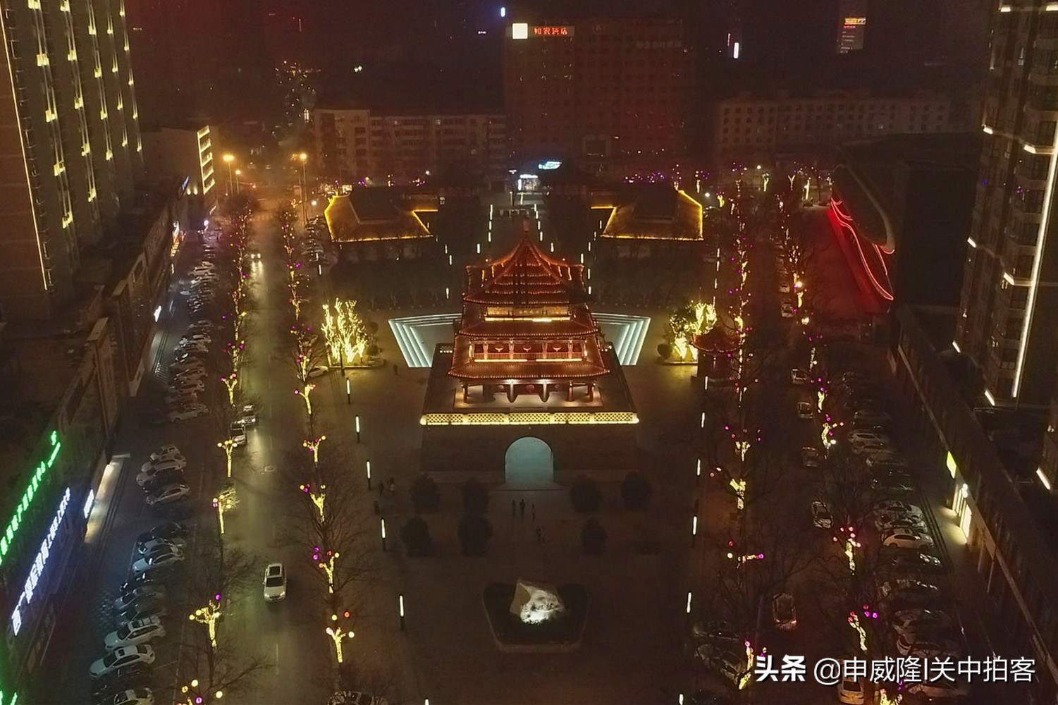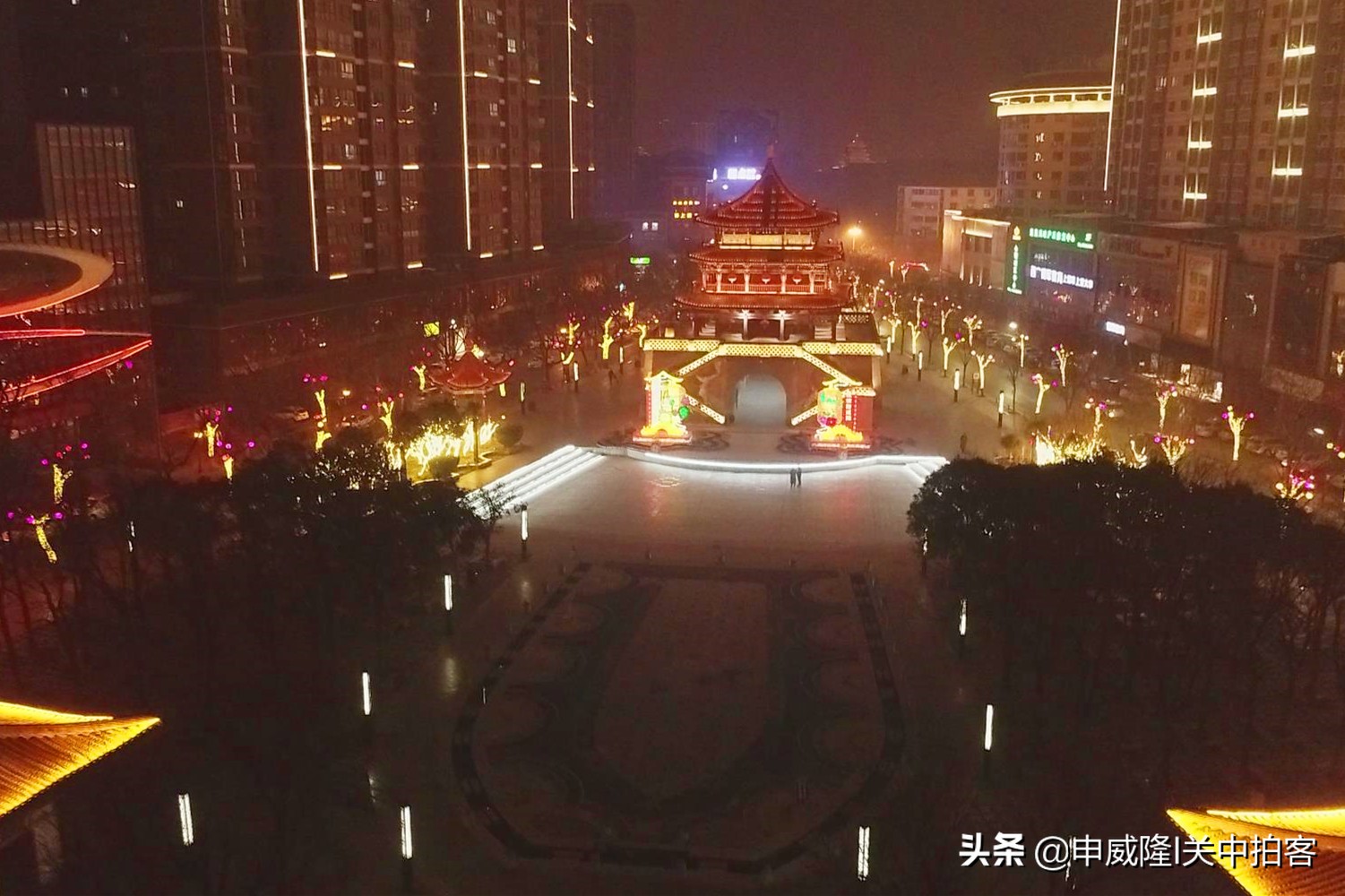 在咸阳市乐育南路东侧,矗立着一座新建的钟楼,形成一片三角形的广场。这里位于老城的西端,紧邻着繁华的市中心,车水马龙,非常热闹。2021年2月12日夜晚,农历新春佳节的时候,我操作自己的无人机,航拍了这里美丽的夜色——