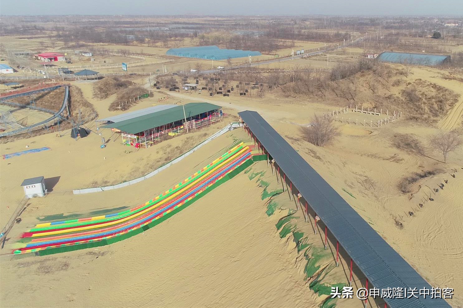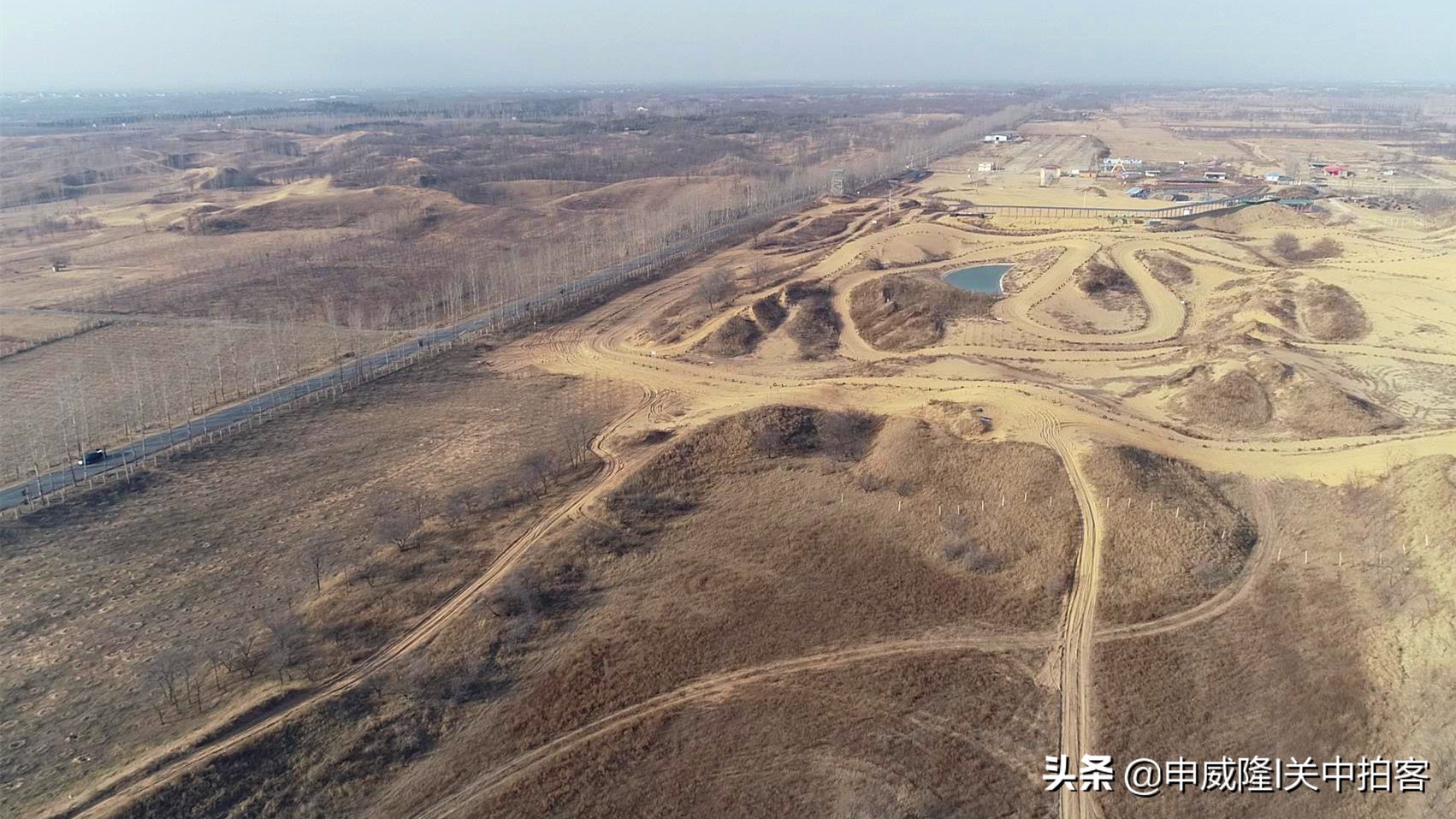 道路的北侧是大荔沙漠公园,可以看到滑沙场、赛车场和骑马场等。据说,这座公园以“沙漠体育运动”为主题,计划建设沙漠定向越野、机动车沙地运动、沙地马术、沙漠狩猎场、沙浴等沙漠体验区。未来,这里会成为陕西的“沙坡头”吗?