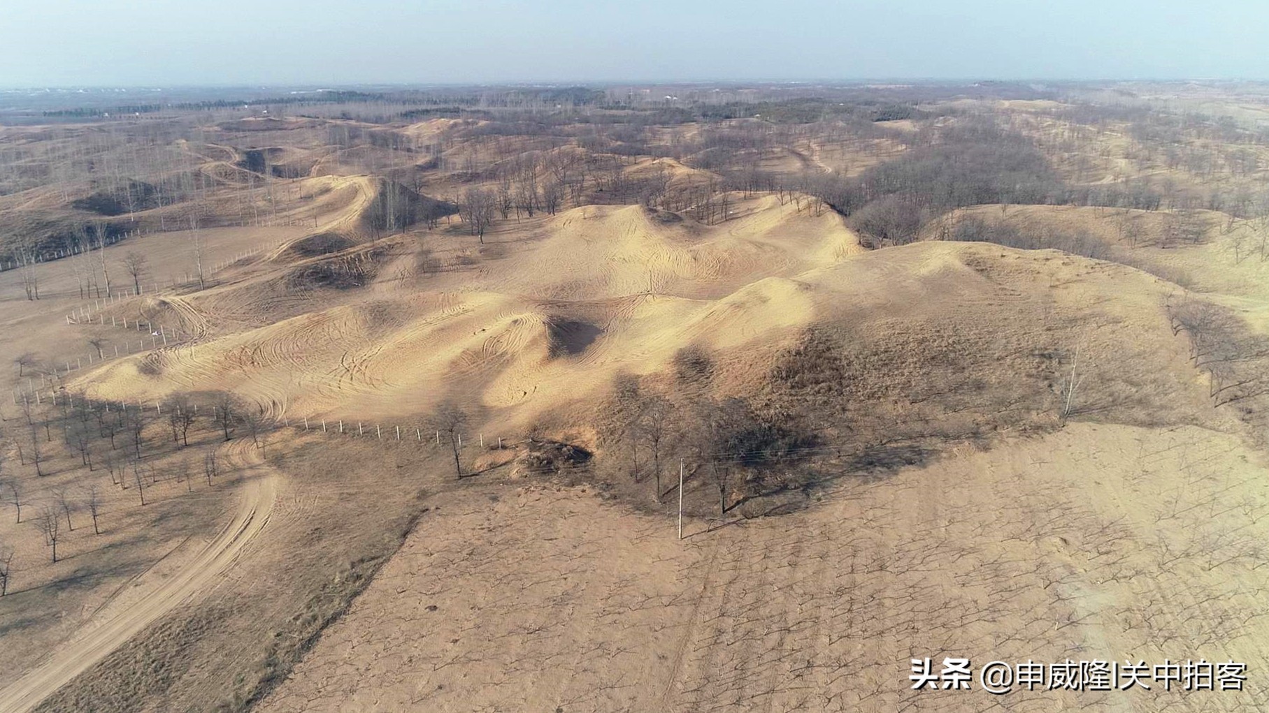 在渭南市大荔县南部,洛河与渭河的交汇处,有一大片沙漠景观,被称为“大荔沙苑”。2021年2月4日上午,我和同事去大荔县,经过沙底村的时候,航拍了这里的沙苑。让我感觉自己仿佛置身于陕北的毛乌素沙漠之中——