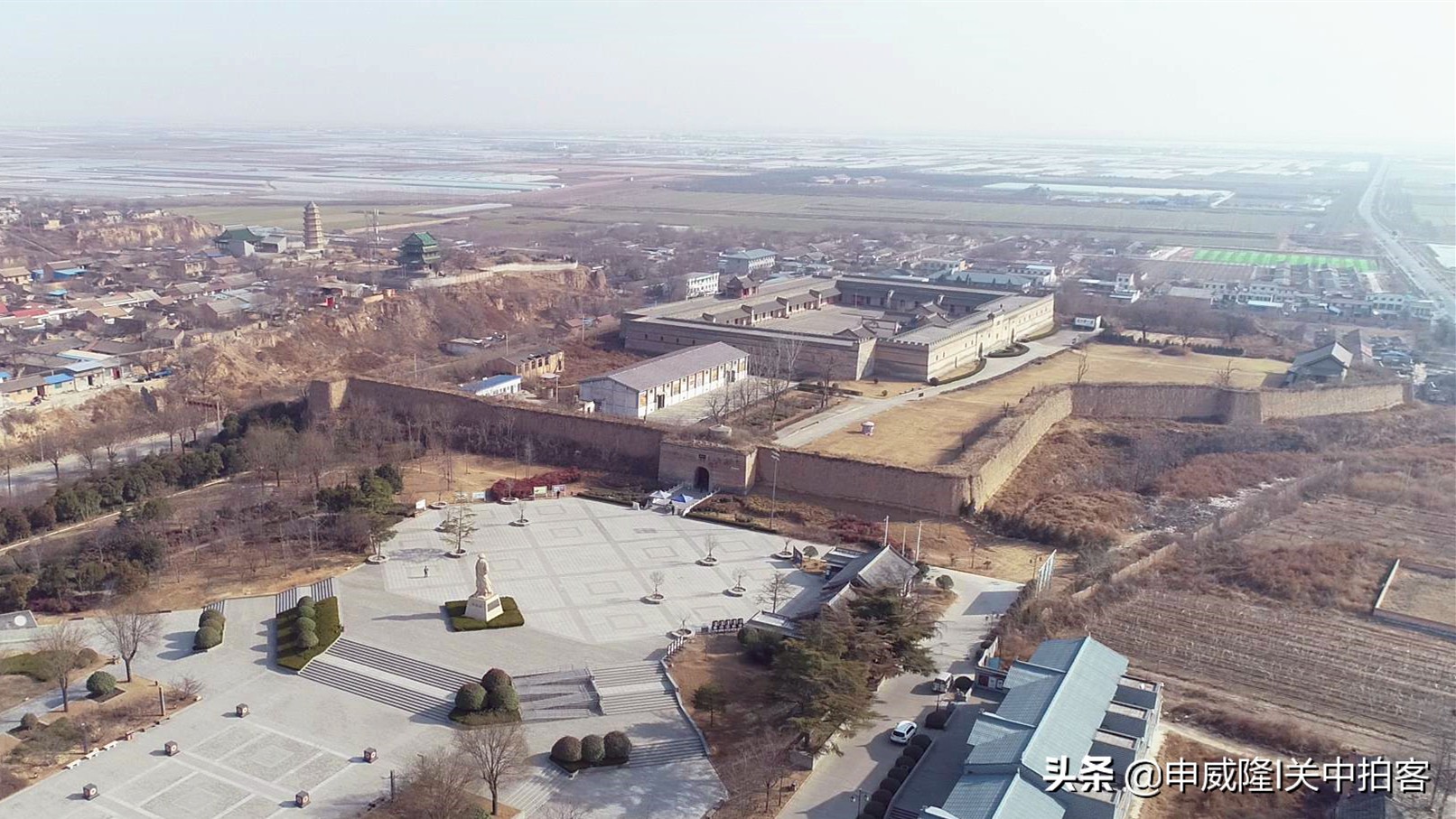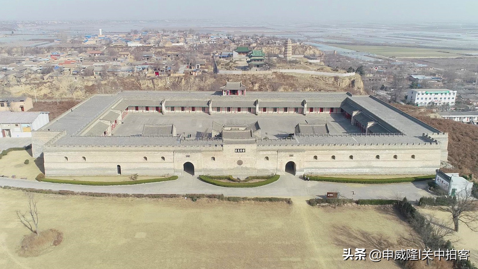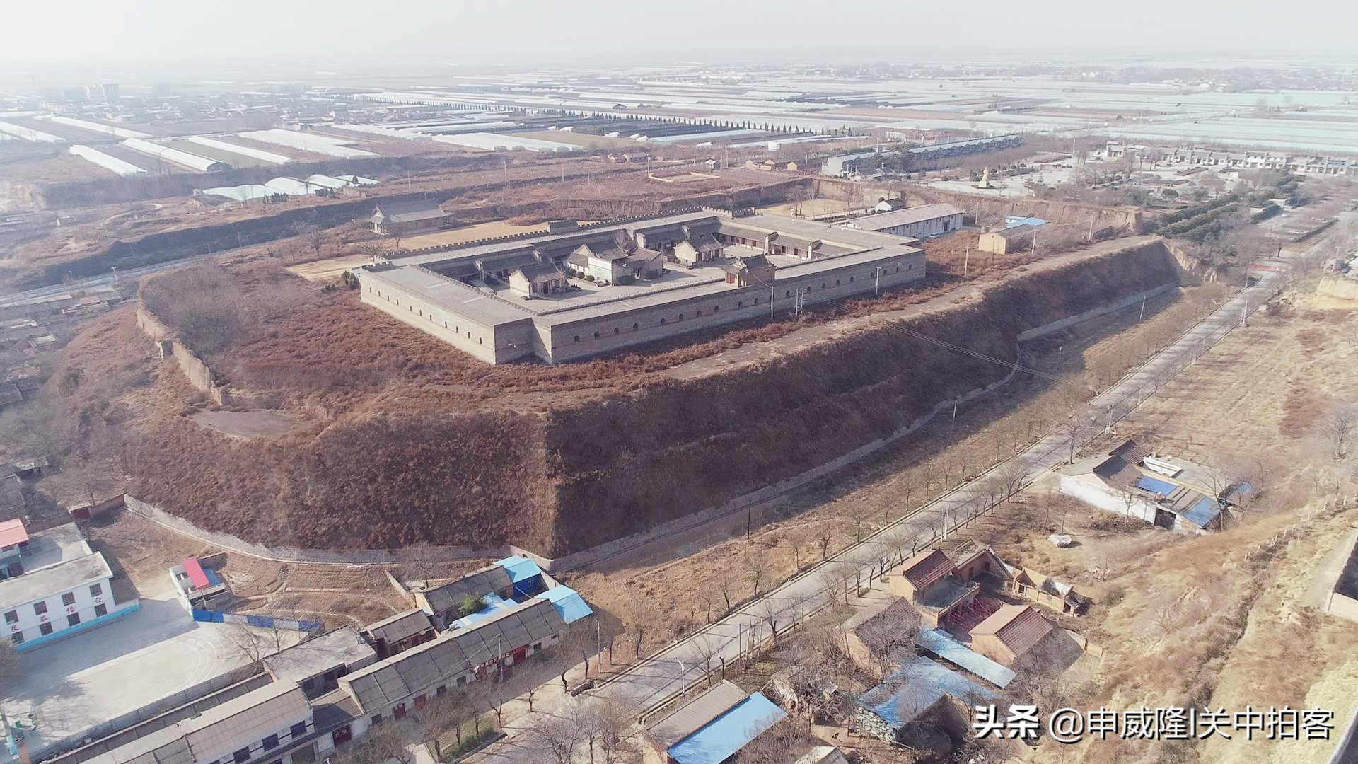 渭南市大荔县朝邑镇南寨子村旁边,有一座气势恢宏的清代城堡式粮仓,被称为“丰图义仓”。 2021年2月4日中午,我和同事去大荔县,经过丰图义仓的时候,航拍了这座粮仓和周围的环境——