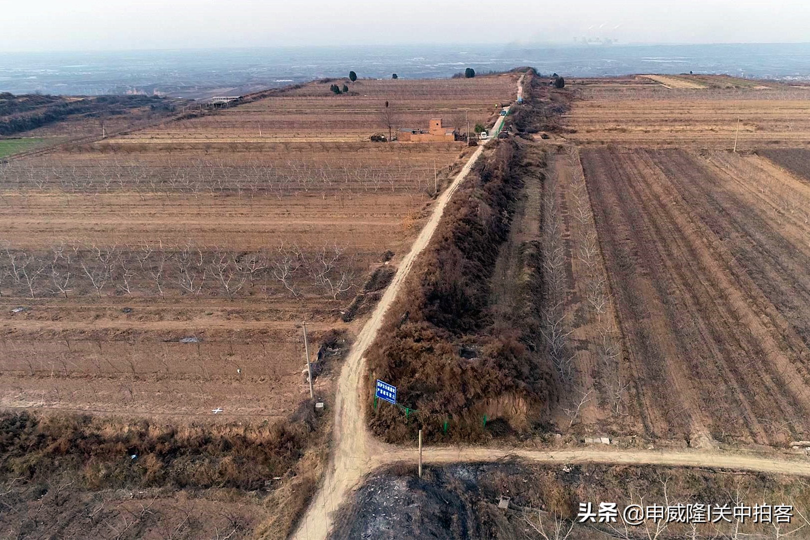 在渭南市大荔县西北,段家镇长城村的南侧,有一段战国魏长城遗址。2021年2月4日下午,我和同事经过这里时,操作自己的无人机航拍了这段长城遗址。从高空中俯瞰,长城连绵不绝,保存非常完好——
