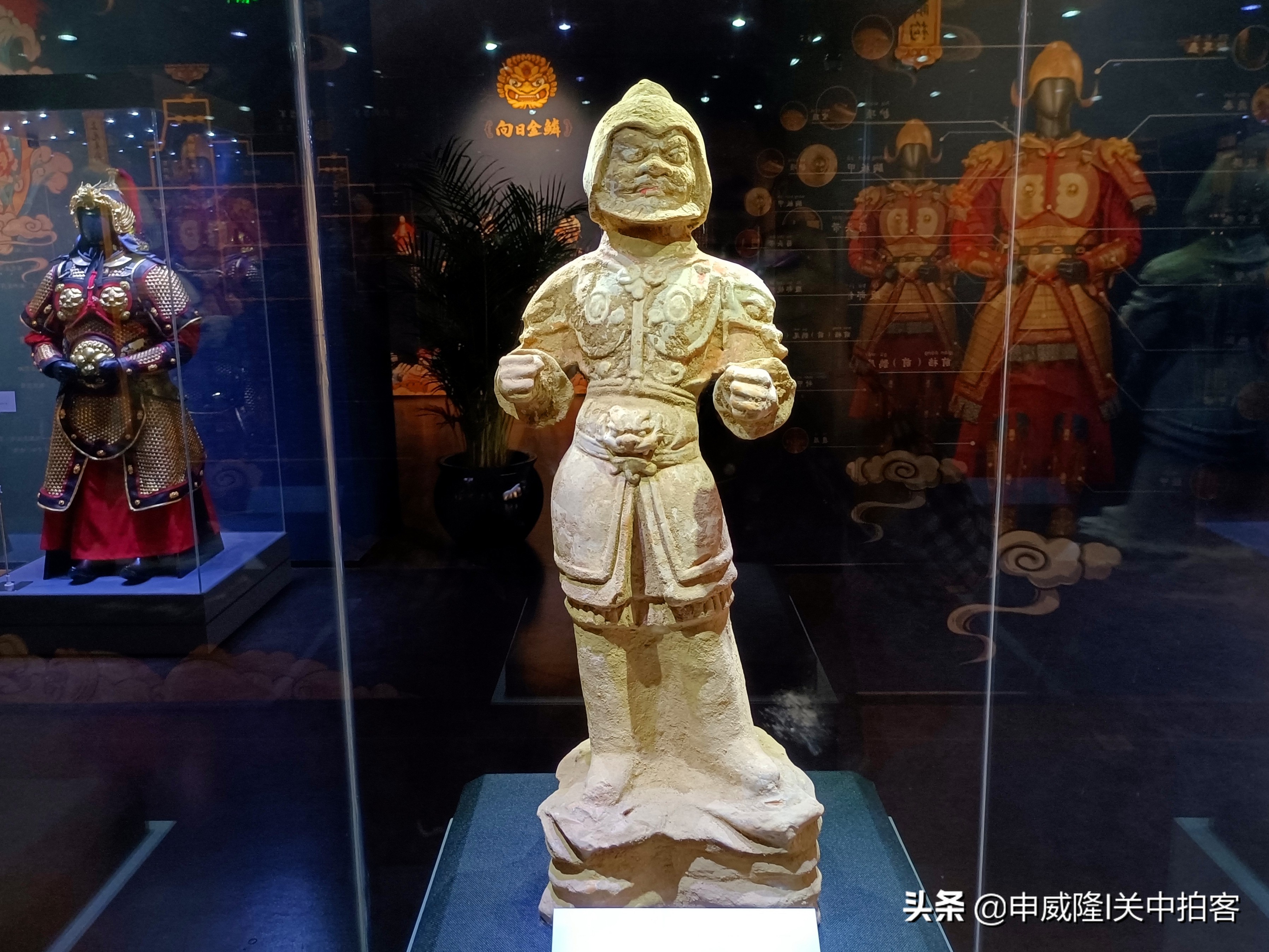 展览陈列的12套唐代甲胄和兵器复原艺术品均由陕西缀甲堂文化发展有限公司提供,两件唐代彩绘武士陶立俑来自秦都古陶博物馆,为一座成立于2008年5月的专题性民办博物馆。