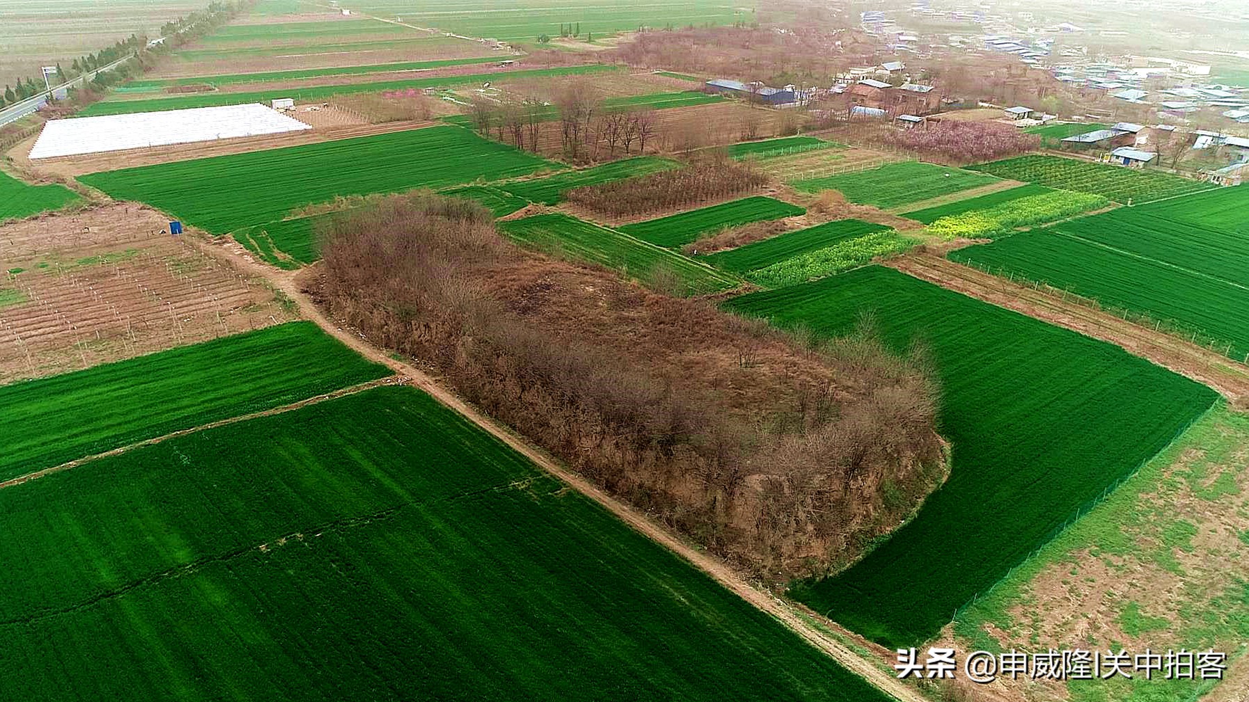 拍摄完徐家寨村东南的长陵陪葬墓核心区,无人机从北向南飞过机场公路,直奔着9号陪葬墓的方向飞去。远处,有四座巨大的烟囱,那里是渭河发电厂;近处,这座9号陪葬墓冢,静静地躺在田野中,周围是一片宁静的村庄。