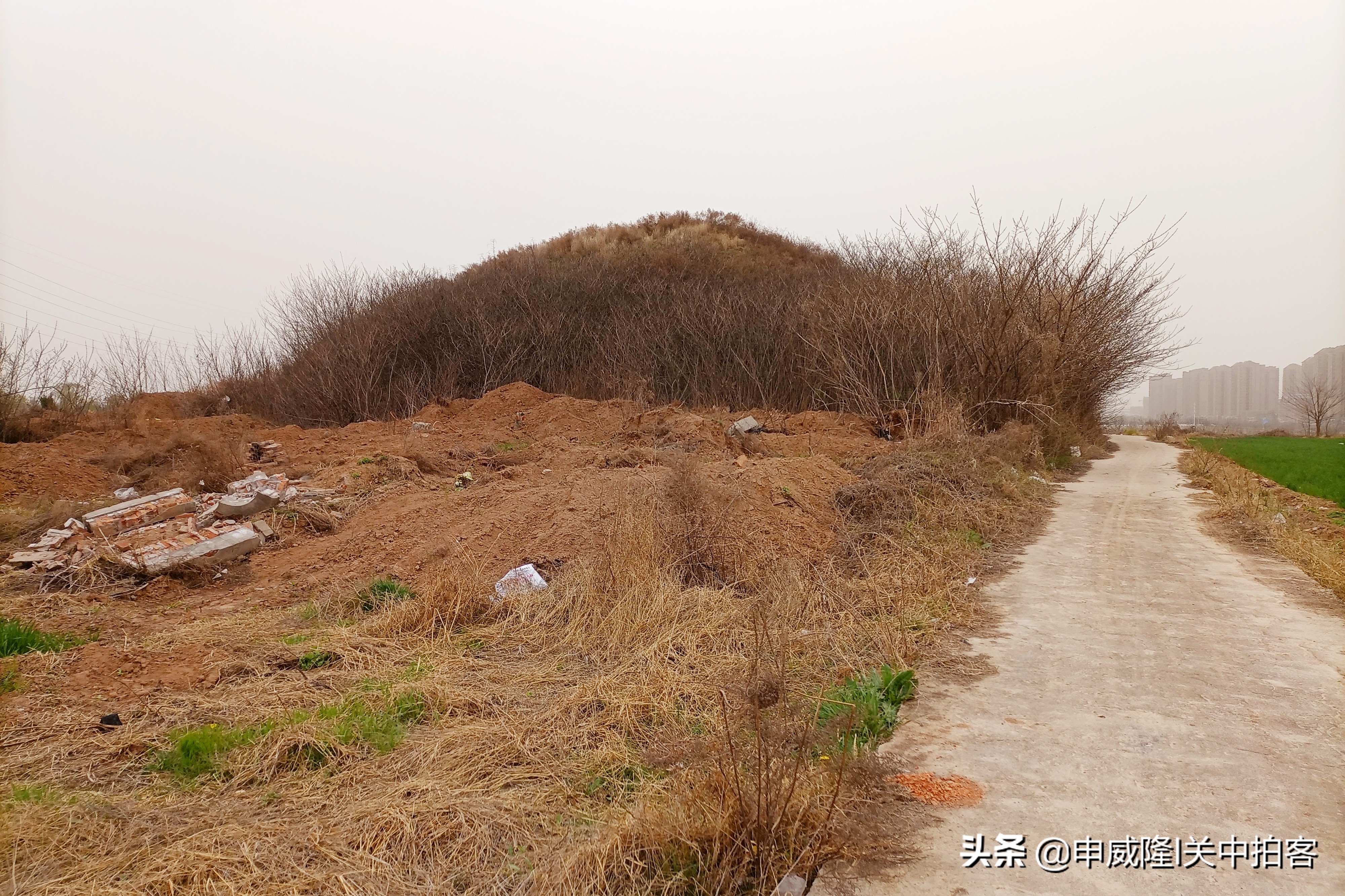 这座墓冢位于底张镇南郭村一组西侧的田野之中,外观呈圆锥形,保存比较完好。墓冢的西侧和北侧有一条小路从下方绕过,墓冢的东侧和南侧是一大片绿油油的庄稼。过去,这里是咸阳市渭城区;如今,归西咸新区空港新城管辖。