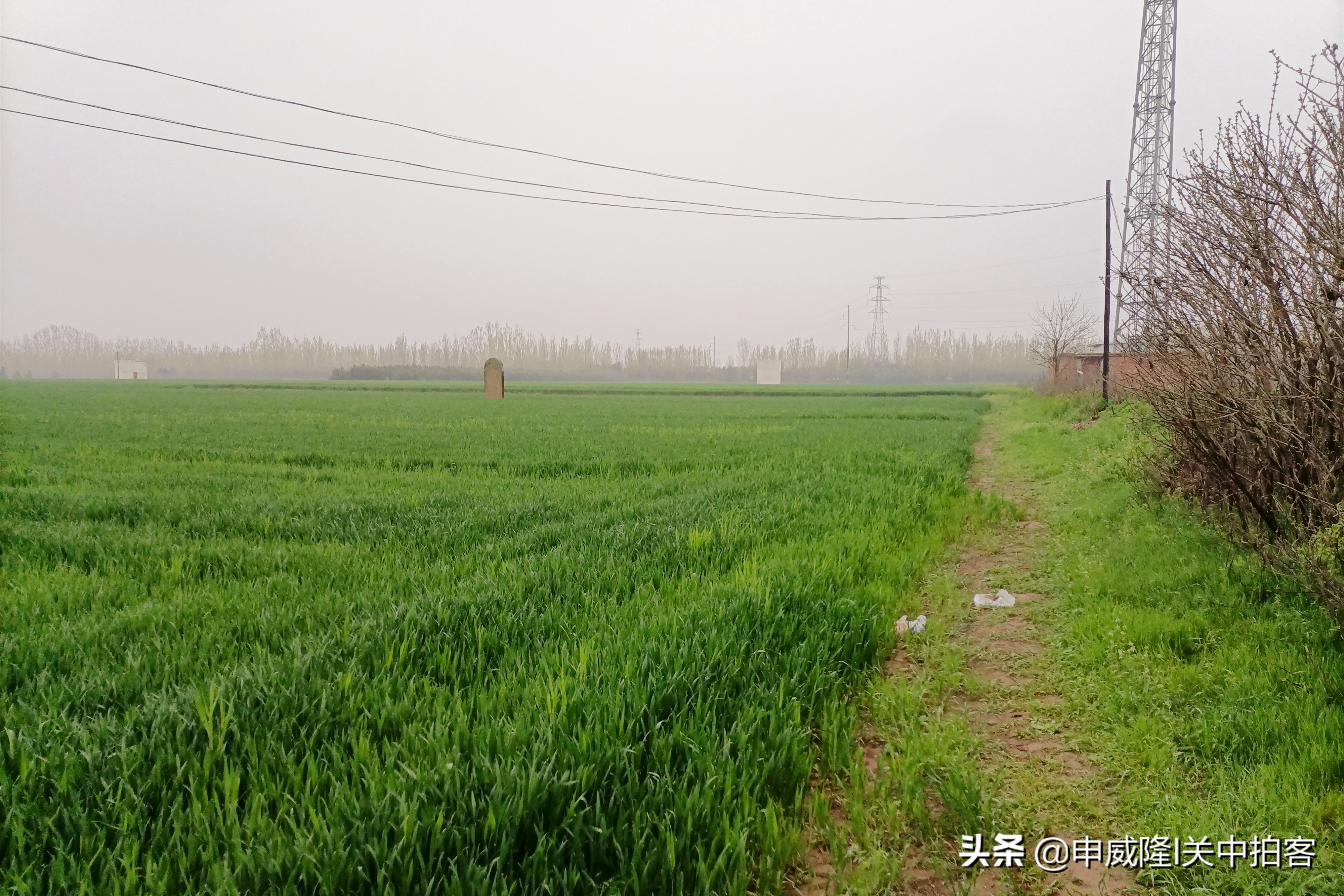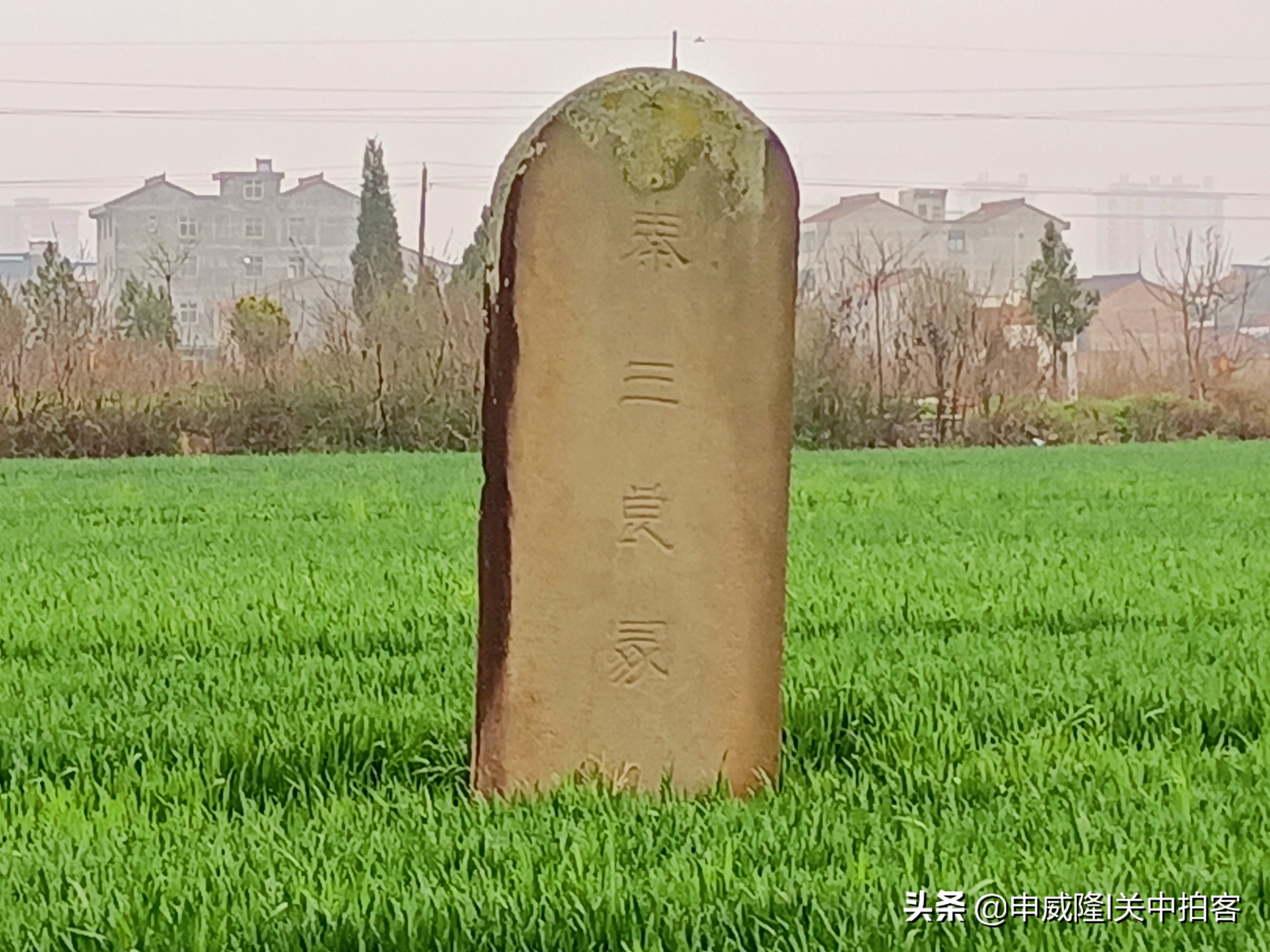 我沿着旁边泥泞的道路,向南逐渐靠近这块石碑。走近以后,我才发现:正值春季,麦苗长起,石碑被包围起来,根本无法接近它。因此,我只能远远地观望,但是可以清晰地看见上面书写的“秦三良冢”四个隶书大字。