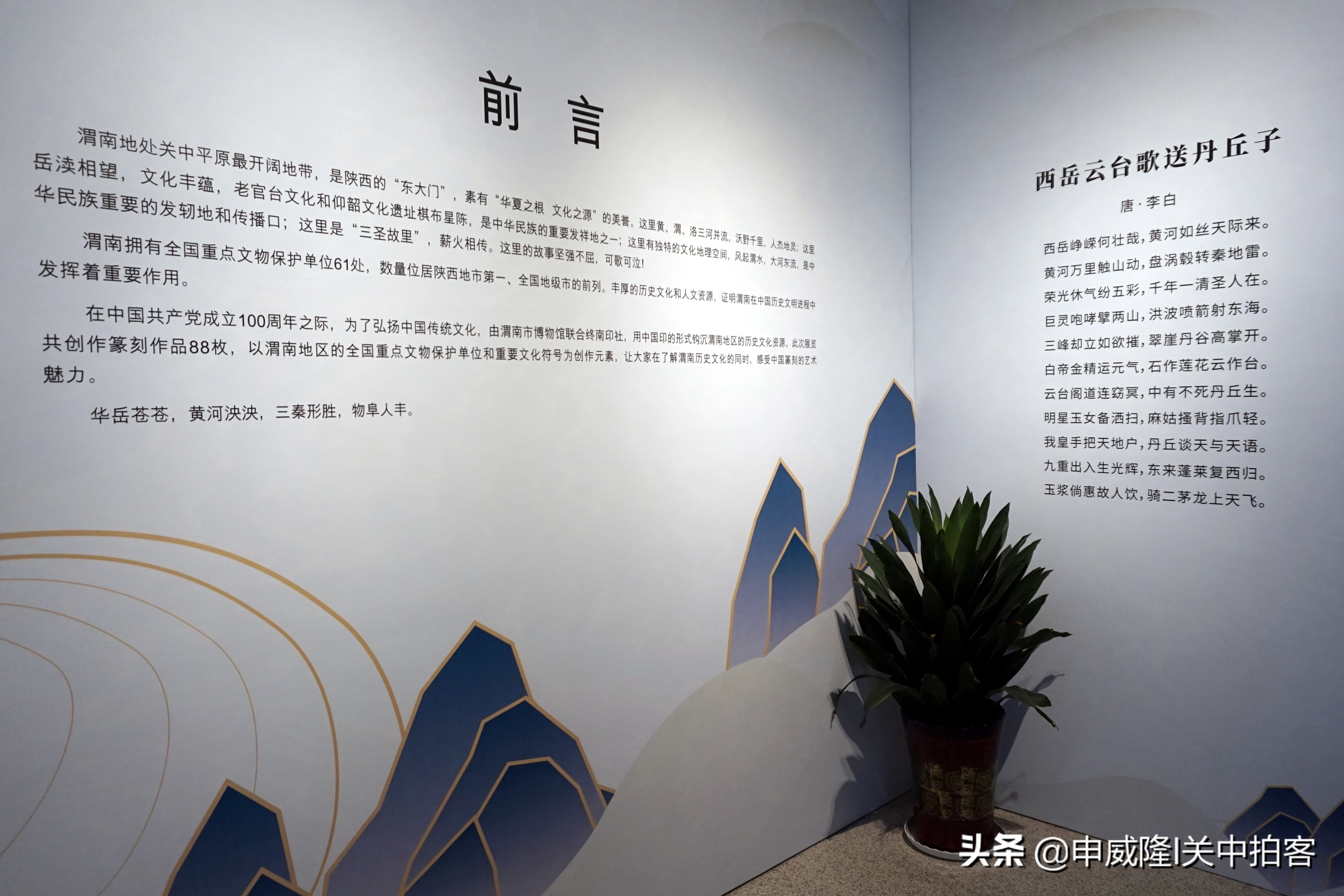 2021年5月18日至6月18日,在渭南市博物馆西三楼东廊道,举行以“家在黄河太华之间”为主题的渭南印记篆刻艺术展。此次展览的文字部分,主要由本人撰稿完成,详细介绍了渭南市的61处全国重点文物保护单位——