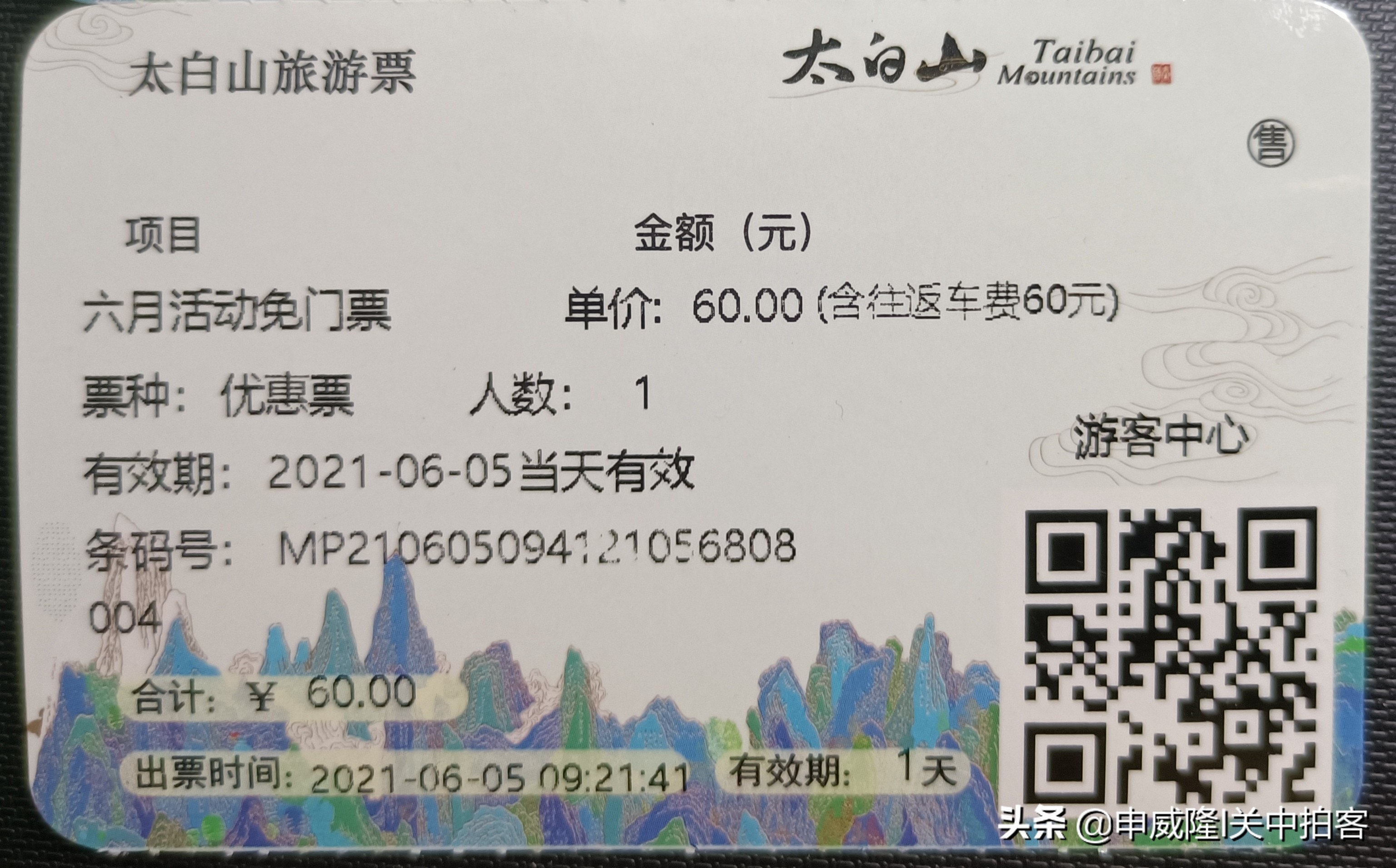 6月3日至6月30日,太白山景区实行免门票优惠政策。得知此事以后,我和家人约好,一起去太白山。6月5日清晨,我们从咸阳出发,游览太白山景区。虽然景区不收门票,但是保险费、公交车费、往返索道费一分钱都不少——