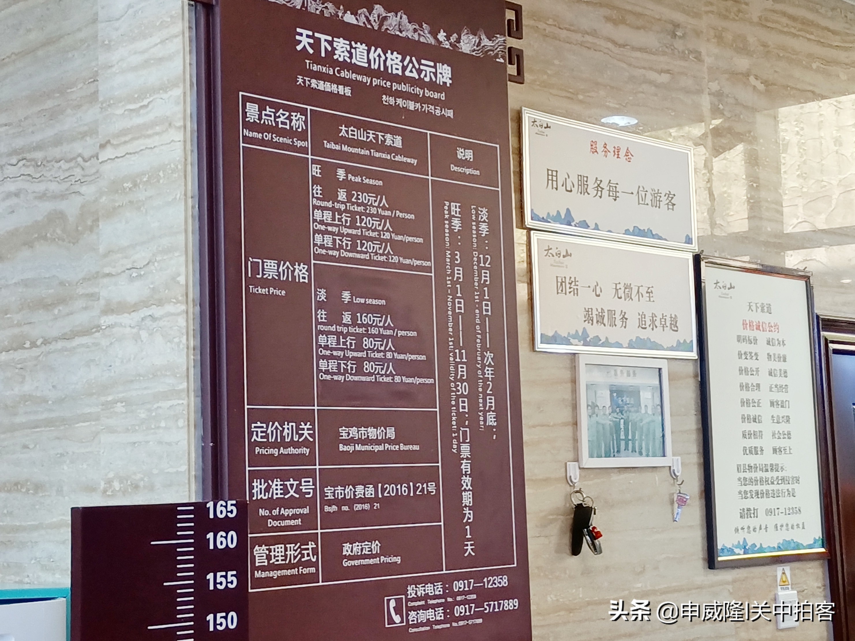 这条索道名为“天下索道”。看到索道的票价,让我感觉好贵呀!往返230元/人,单程上行120元/人,单程下行120元/人。我们一家三人,乘坐缆车往返一趟,竟然就要690元呀!因此,大家将这条索道称为“天价索道”。