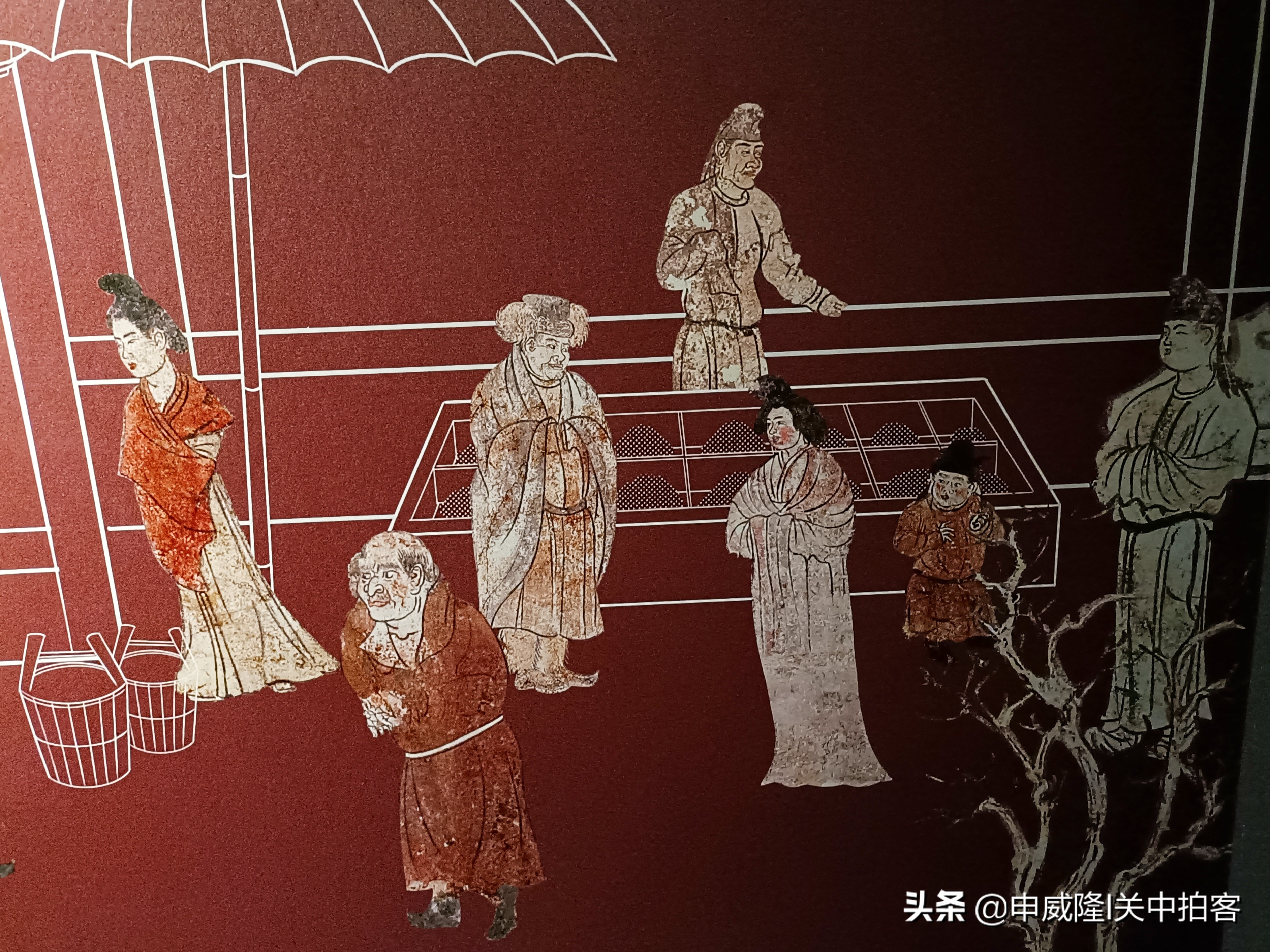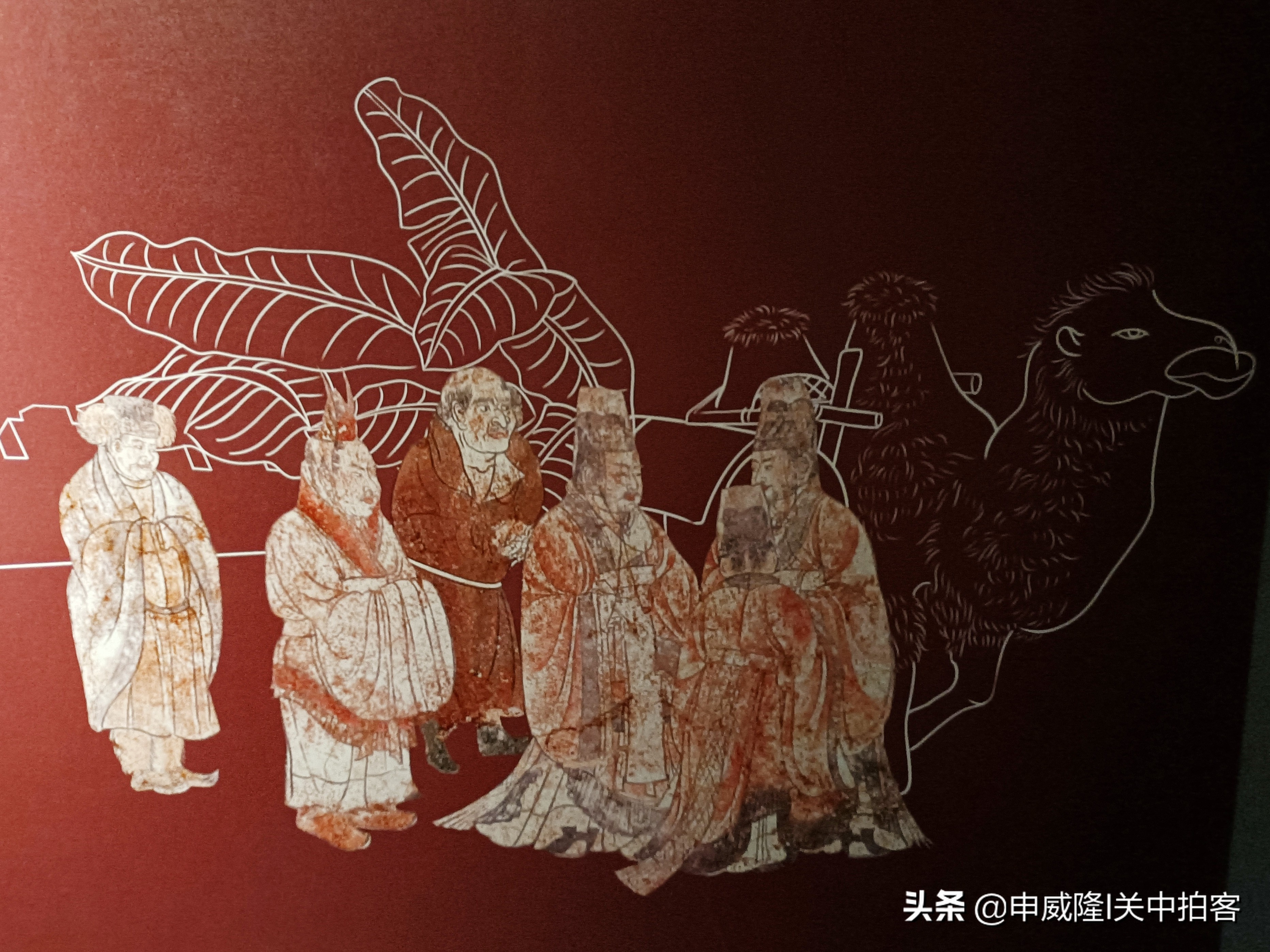 在唐长安城内,有东市和西市两大市场,东市主要服务于达官贵人等少数人群,西市则是普通老百姓购物的主要场所,云集着大量西域和日本等外国的客商,乃名副其实的“国际性大市场”。这里展示了外国使者在大唐西市逛街的情景,旁边可以看到章怀太子墓前室壁画中的侏儒形象。