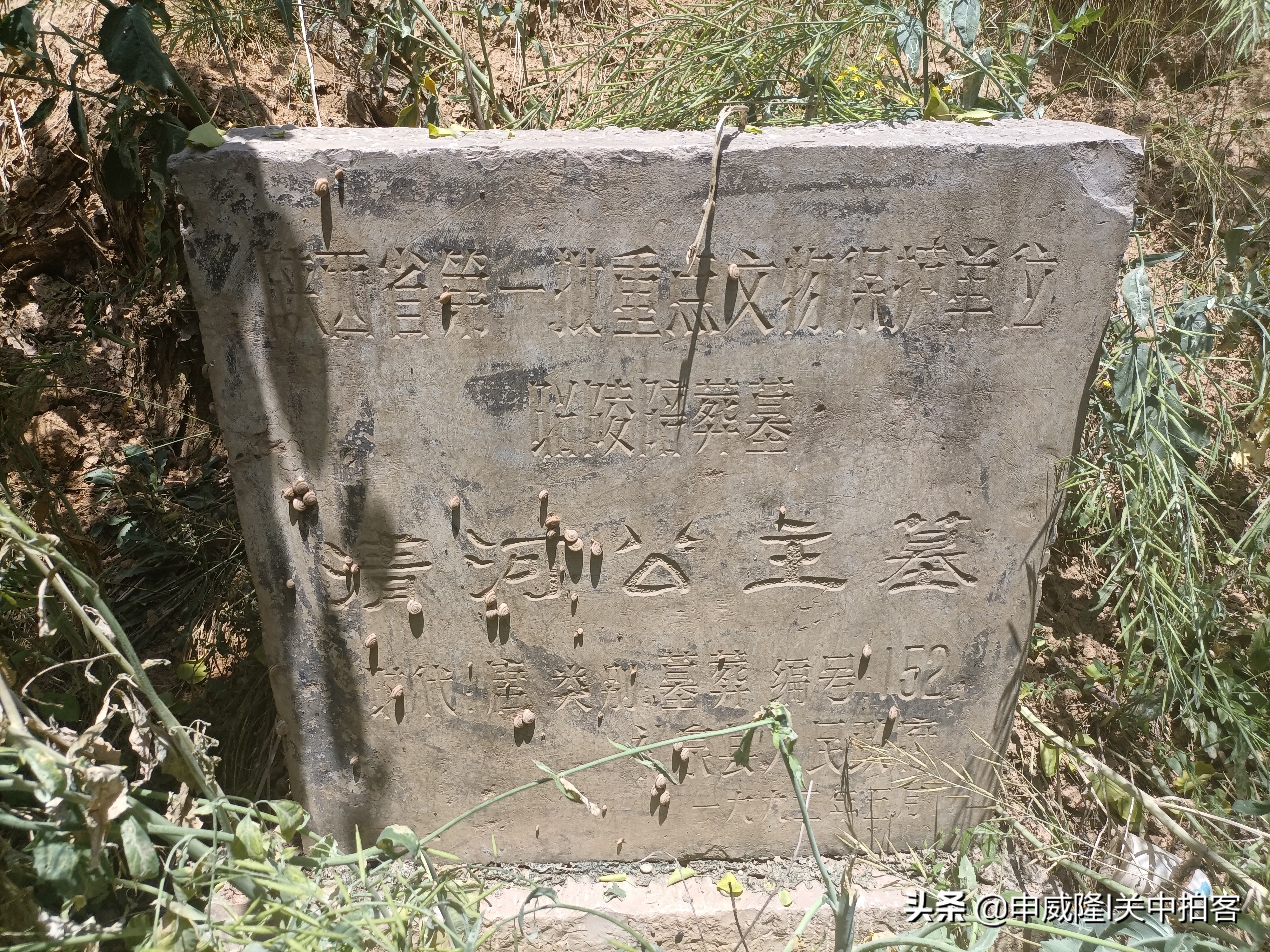 走到清河公主墓旁边,在墓冢西南角竖立着一块陕西省重点文物保护单位碑。1956年8月6日,作为“昭陵陪葬墓”的一部分,清河公主墓被陕西省人民委员会公布为陕西省第一批重点文物保护单位。1992年5月,礼泉县人民政府在此立碑,将此墓编为152号唐代墓葬。