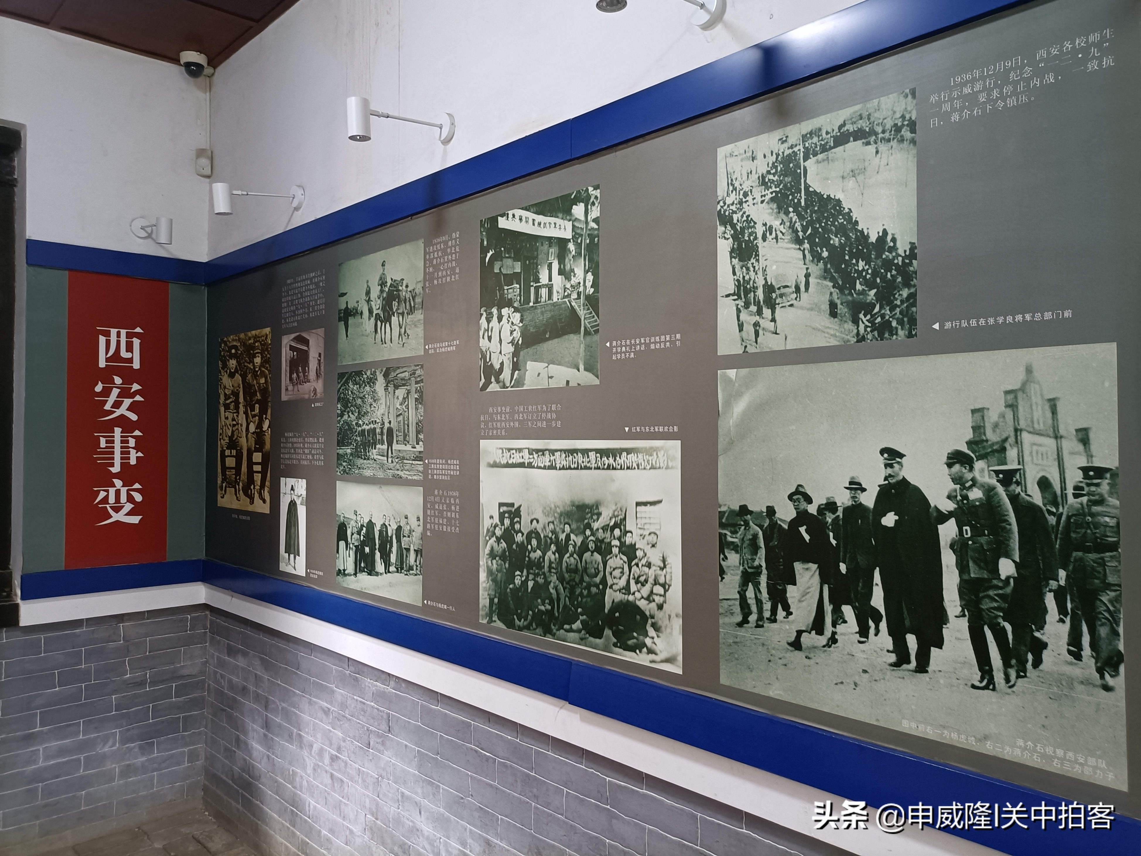 在东侧的房间内,通过大量的图片,介绍了“西安事变”的历史。1936年12月12日,杨虎城和张学良为了劝谏蒋介石改变“攘外必先安内”的国策,在西安发动“兵谏”,对蒋介石进行控制,震惊中外。