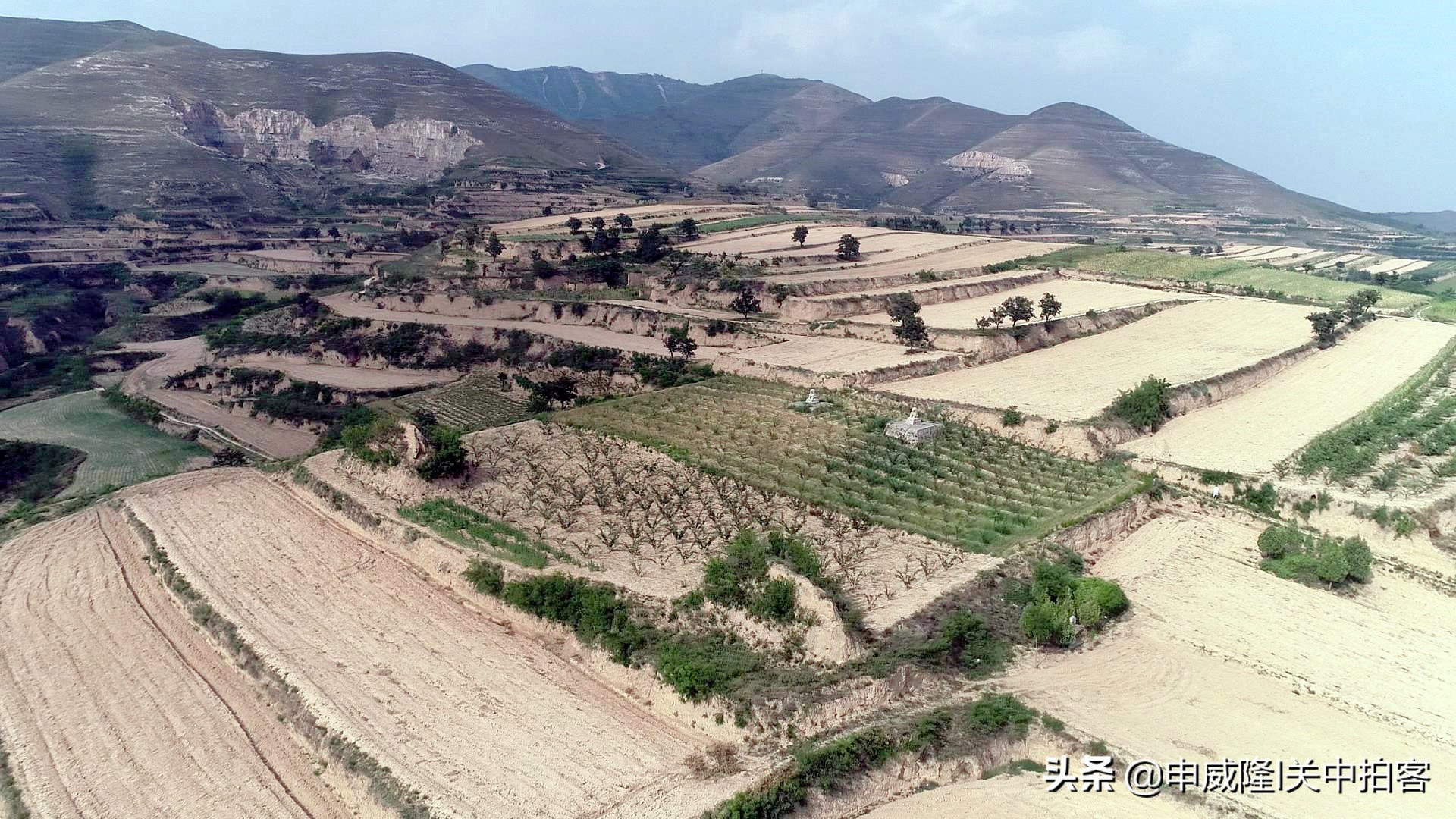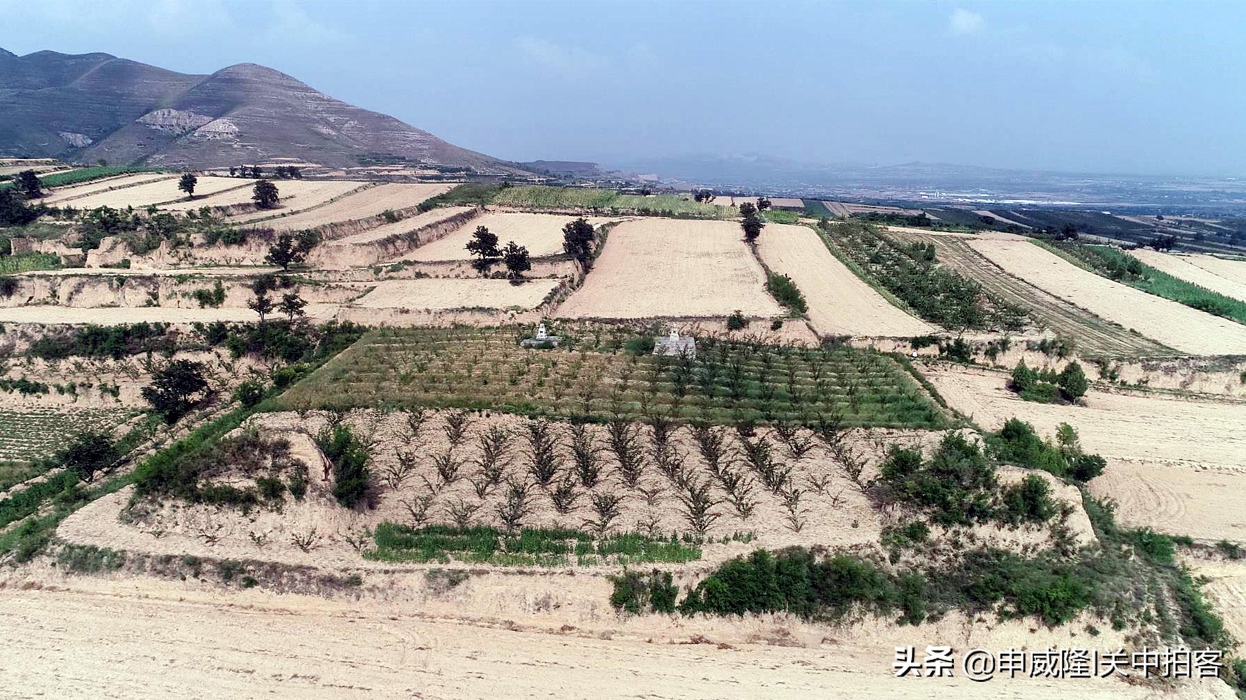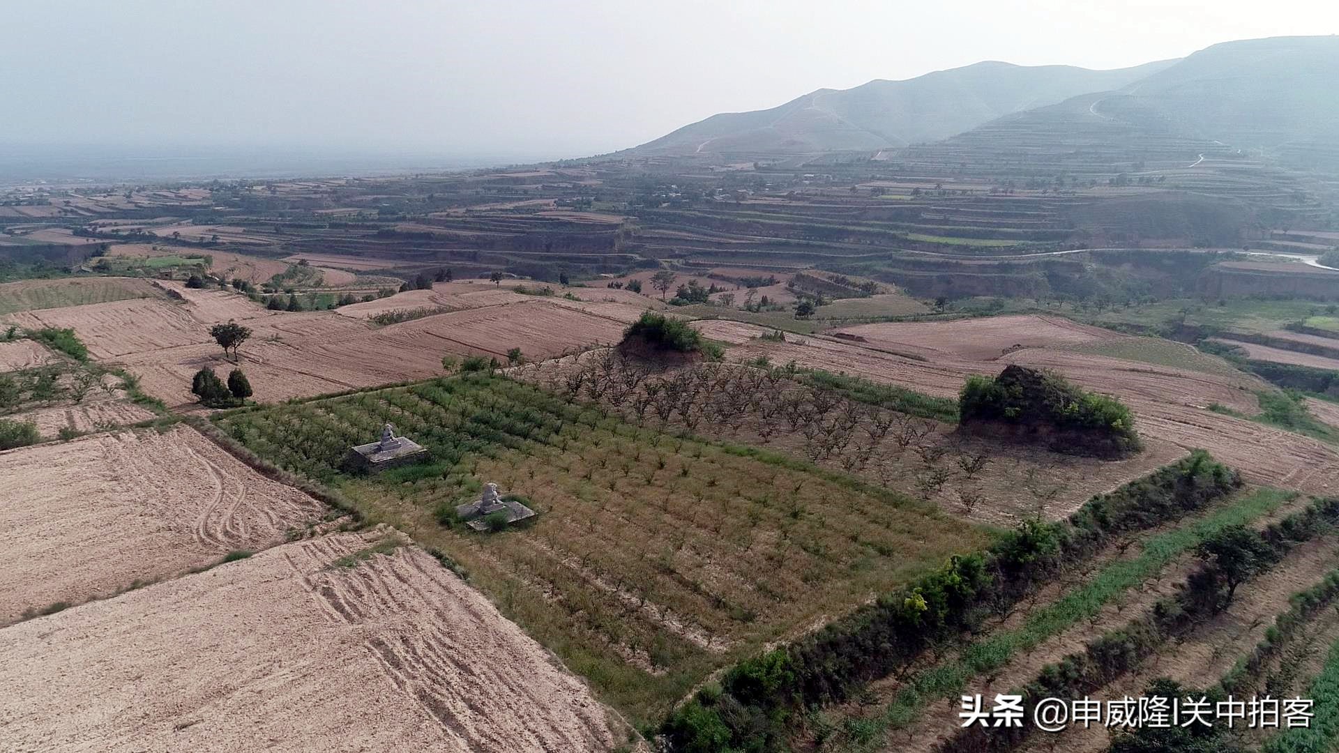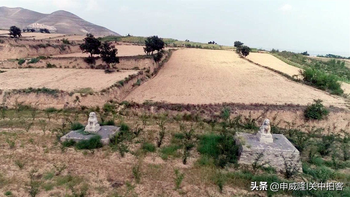 随后,我操作自己的无人机对唐光陵西门遗址进行航拍。无人机从遗址边升起以后,自西向东飞过遗址的上方,穿过夯土阙台遗址和石狮子之间。然后,环绕遗址飞行一大圈儿,这里的历史遗迹和周围的自然环境一览无余。