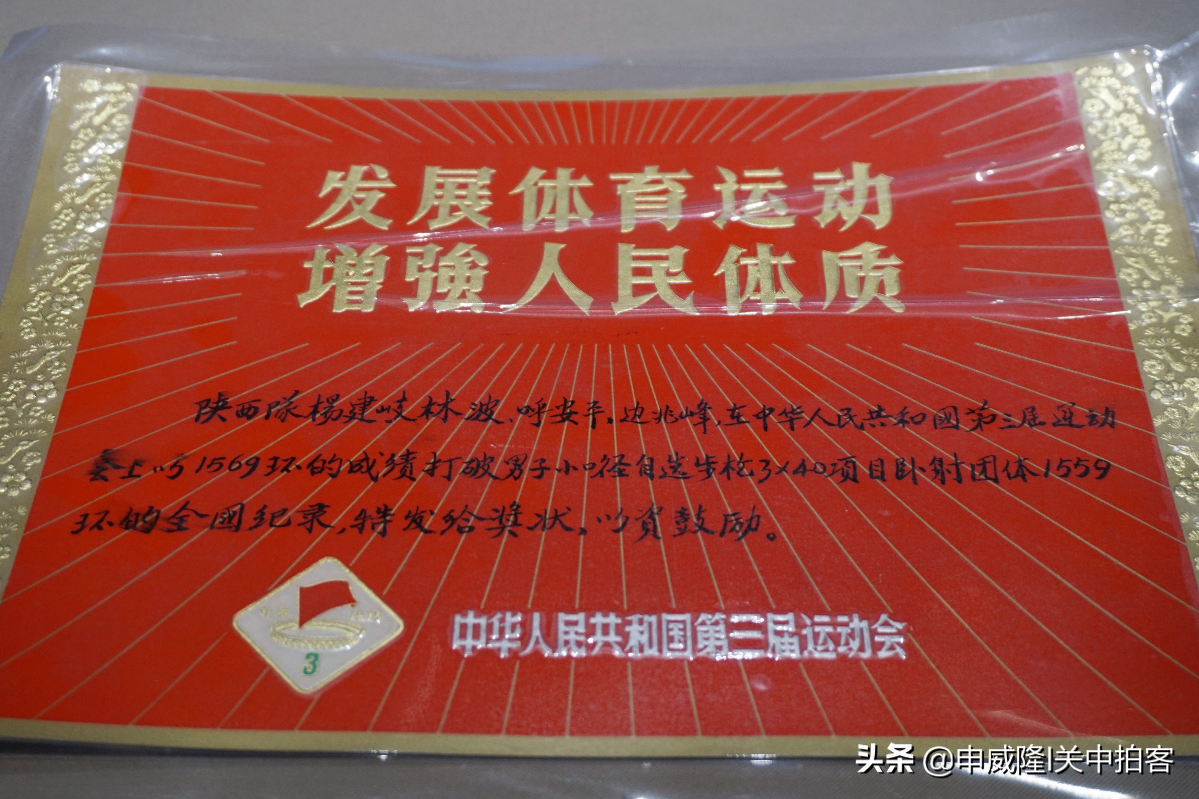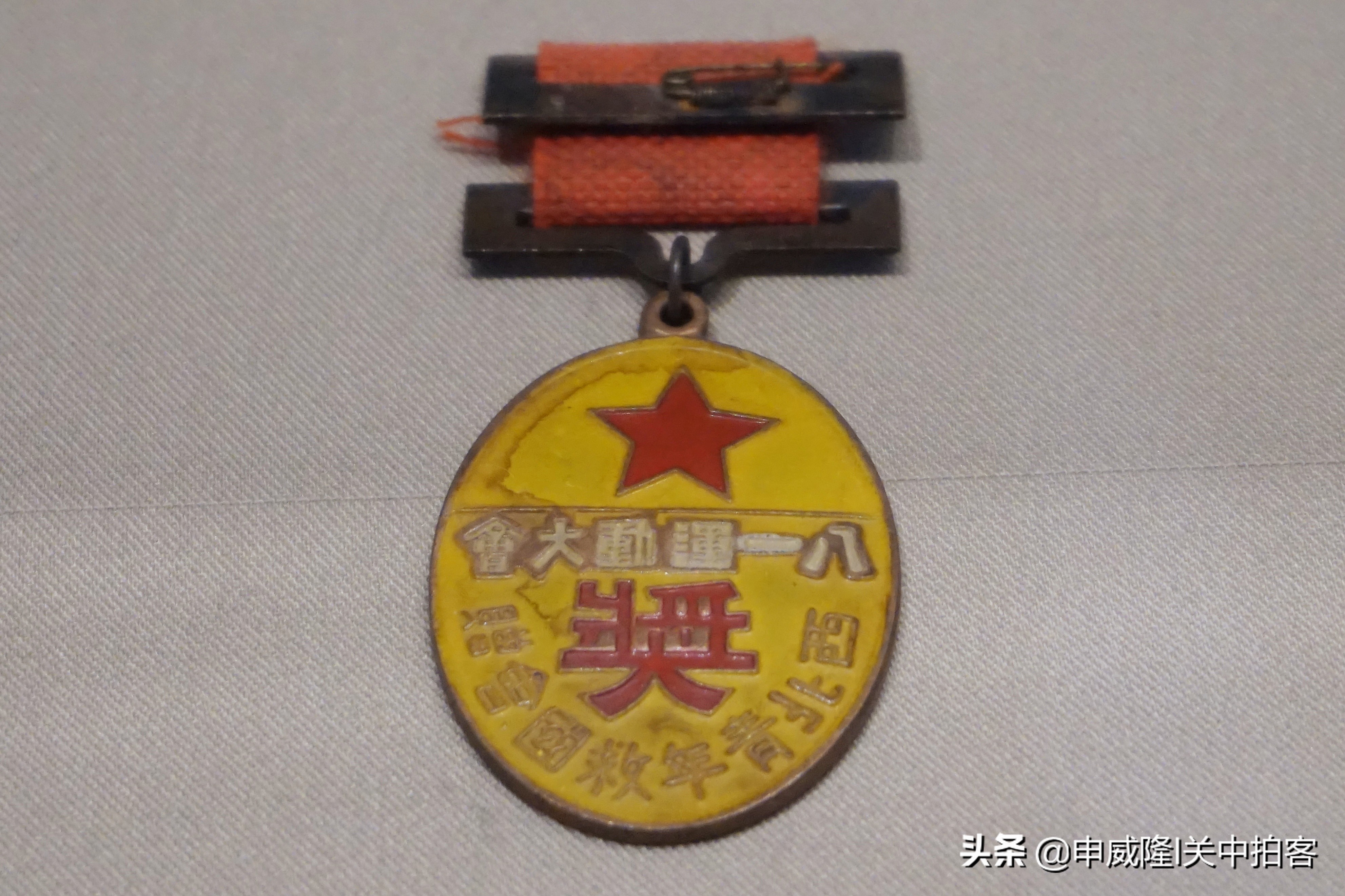 这里陈列着一枚西北青年救国会赠的八一运动大会奖章。1937年,卢沟桥事变爆发后,延安各界举行群众大会,声援平津抗战的将士。在这种形势下,迎来“八一”建军十周年纪念日,陕甘宁边区决定将每年都举行的庆祝建军节运动会改为“抗战动员运动会”。当年8月1日,在延安东门外飞机场,举行了全苏区“八一”抗战动员运动会,毛泽东出席开幕式与闭幕式,并且发表讲话,鼓励边区军民。