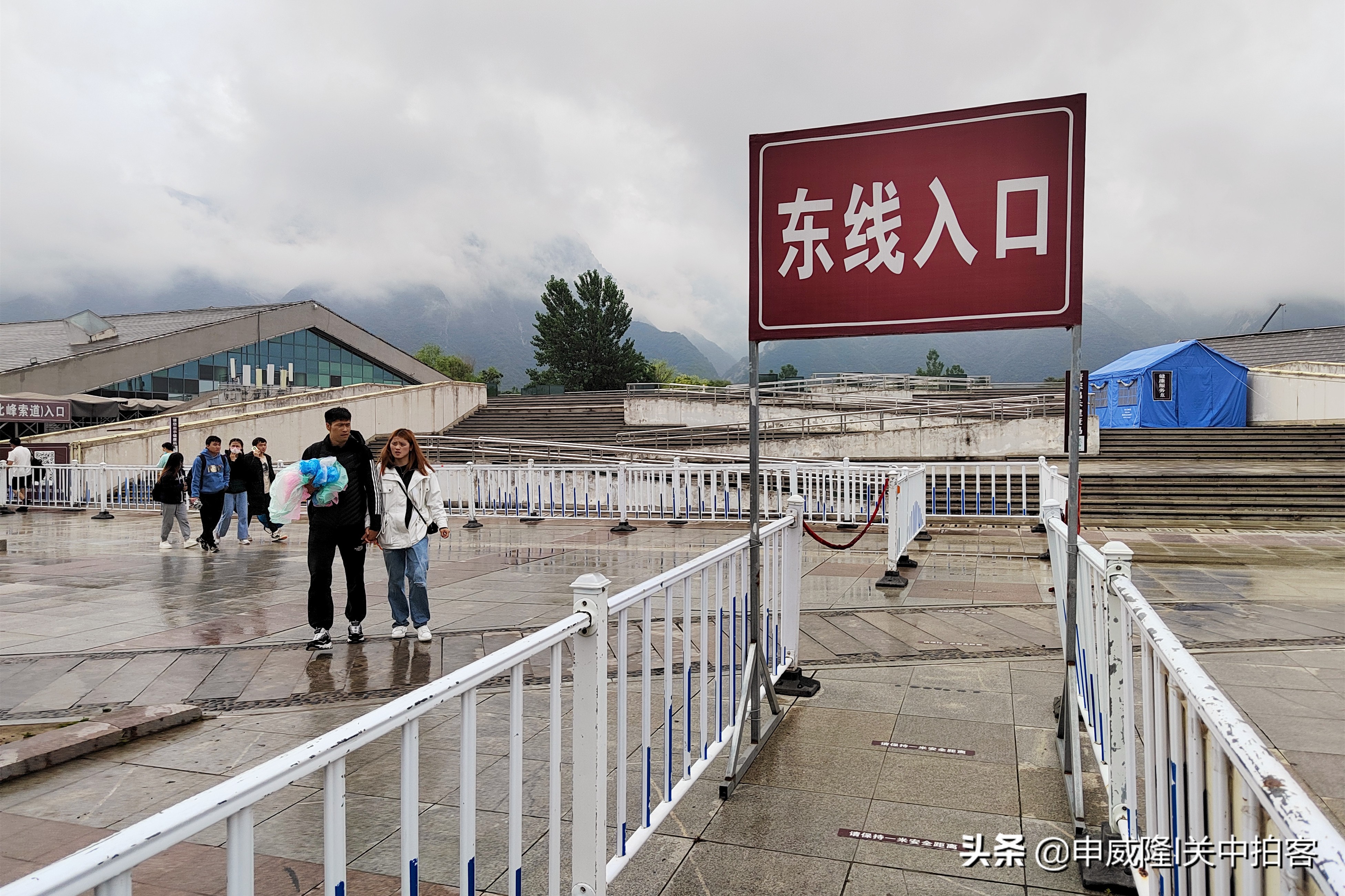 6月11日下午,我和朋友乘坐高铁来到华阴市,住在华山脚下的华山客栈(侠文化主题酒店)。夜晚,预报有雨,华山景区的徒步登山线封闭。清晨,果然下起蒙蒙细雨,华山周围烟雾缭绕。天气凉爽,游客稀少,我体验了一次很轻松的华山之旅。