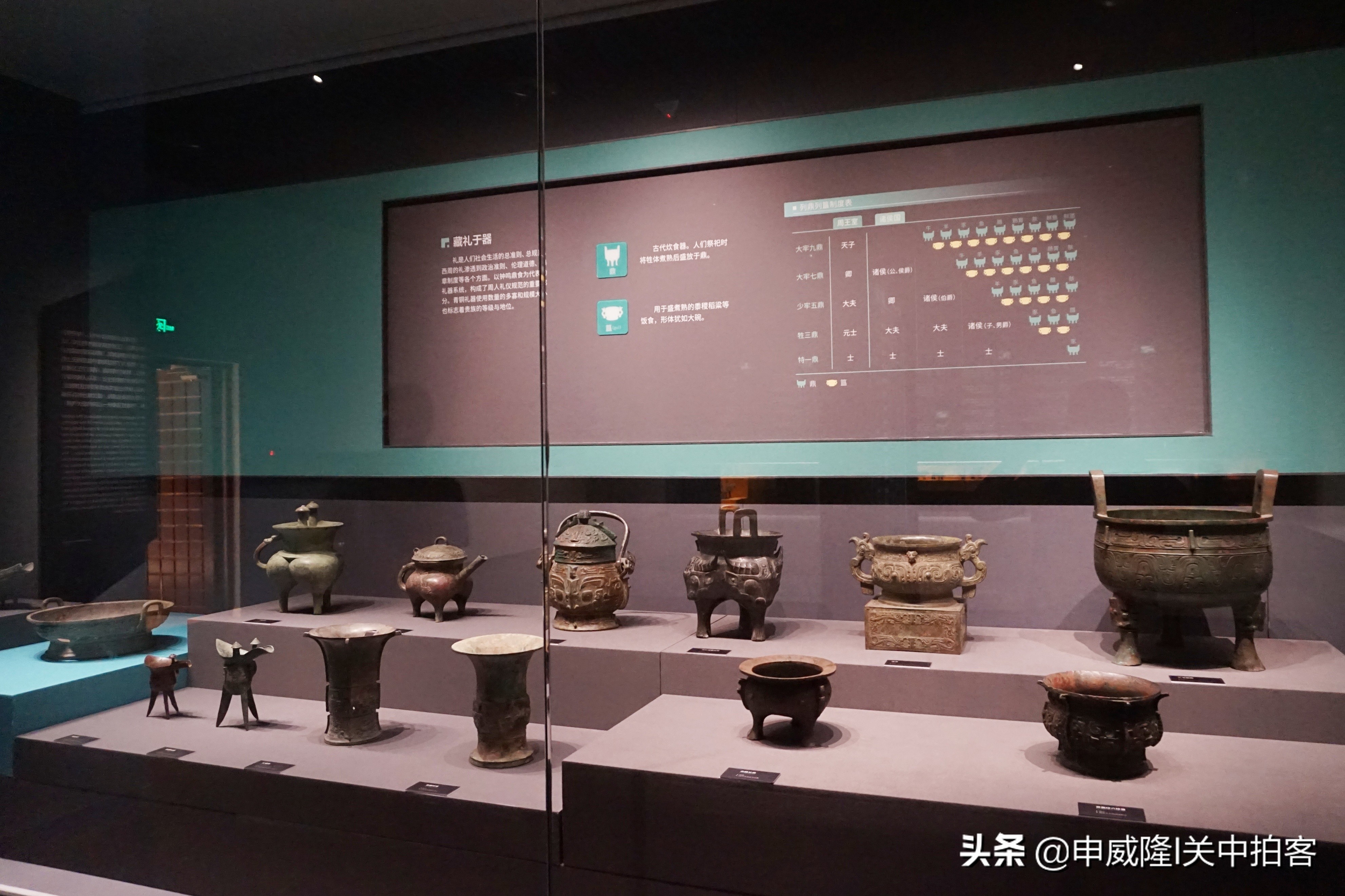 走进西安博物院的基本陈列,迎面便是一件巨大的西周勾连云雷纹大鼎,凝重浑厚,纹饰精美。这里展示了丰镐遗址出土的大量西周时期的青铜器,包括食器、酒器、乐器、兵器、车马器等。