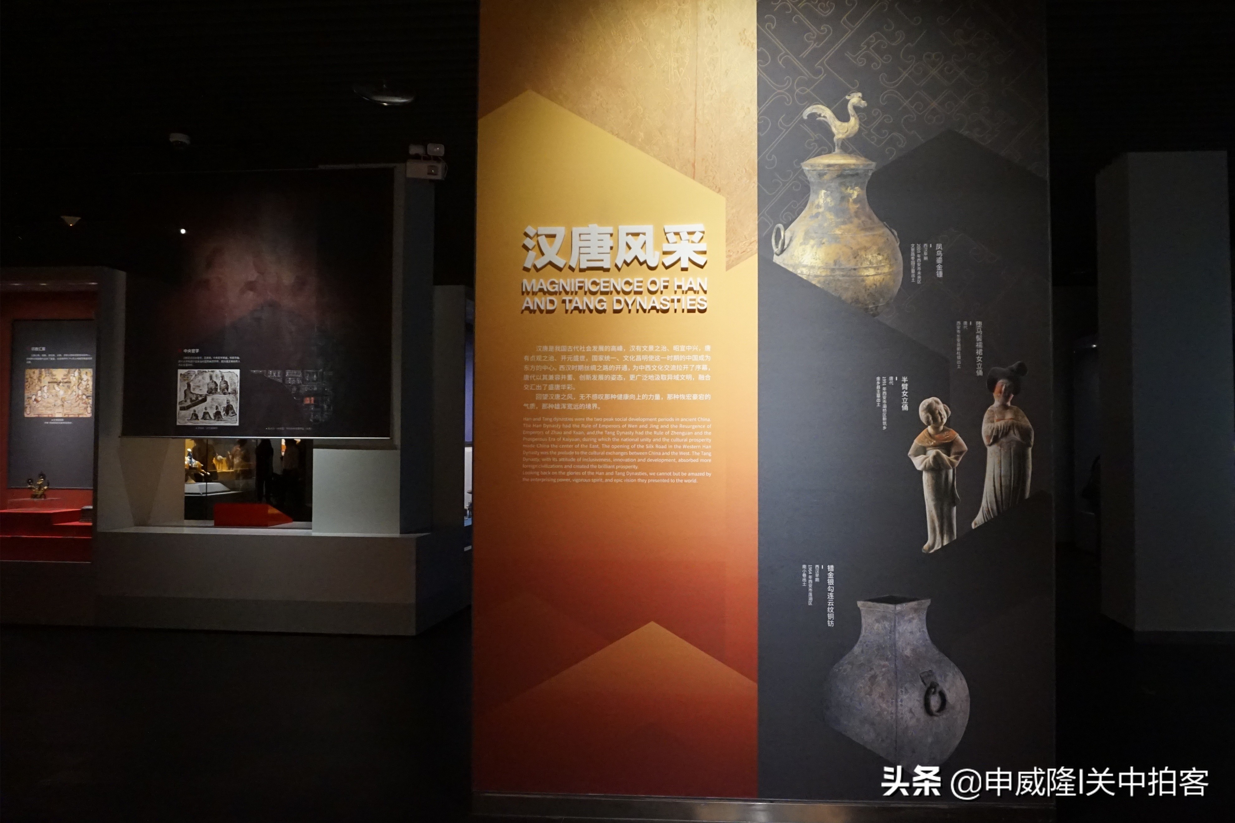 这里位于西安博物院地下一层的二、三展区内,分为“周秦文明”“汉唐风采”“府城华章”三个部分,按照时间的先后顺序展示西安市内出土的青铜器、陶瓷器、金银器、陶俑和唐三彩等珍贵文物。