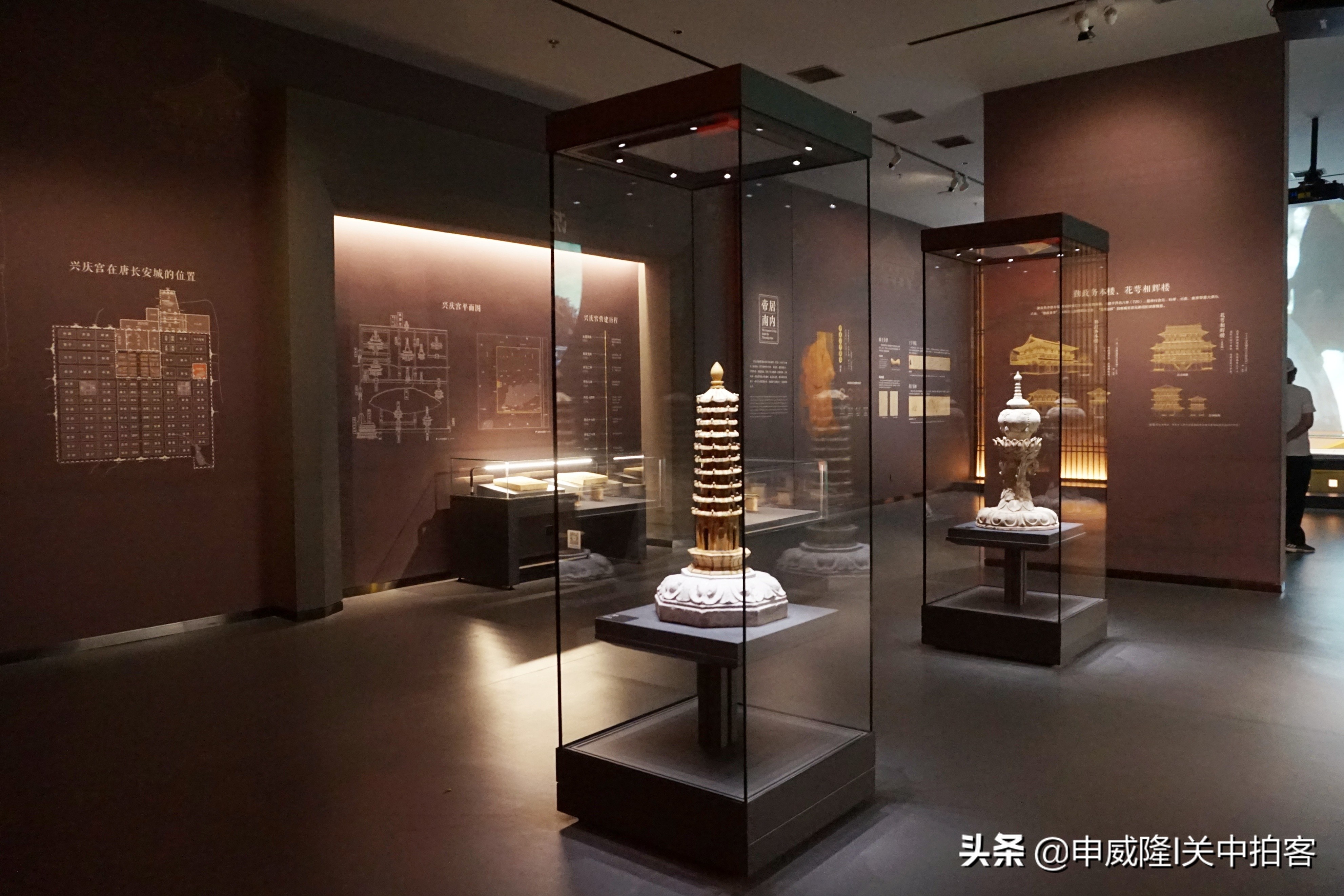2022年6月4日上午,我前往西安市兴庆宫公园,参观这里的陕西唐三彩艺术博物馆。走进南熏阁北门,沿着幽深的回廊,按照顺时针方向参观。在东侧第一个展厅内,结合文字、图片、实物和多媒体视频等,详细介绍了唐长安城和兴庆宫的发展历史。