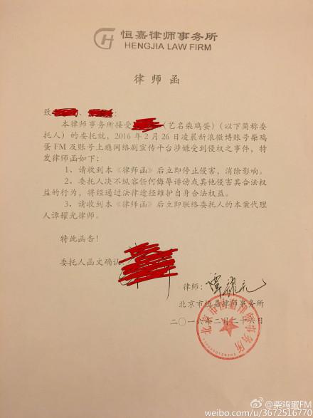 尽管在柴鸡蛋的微博上此条微博发出后又秒删,还是被有心人截了个图!“拍我的戏就得听我话”好有霸道女总裁的风范,尽管当晚柴鸡蛋就在微博上发了律师函称微博被盗并将通过法律维护自身合法权益。然而并没有什么用啊,许魏洲就这么滴被黑一次?