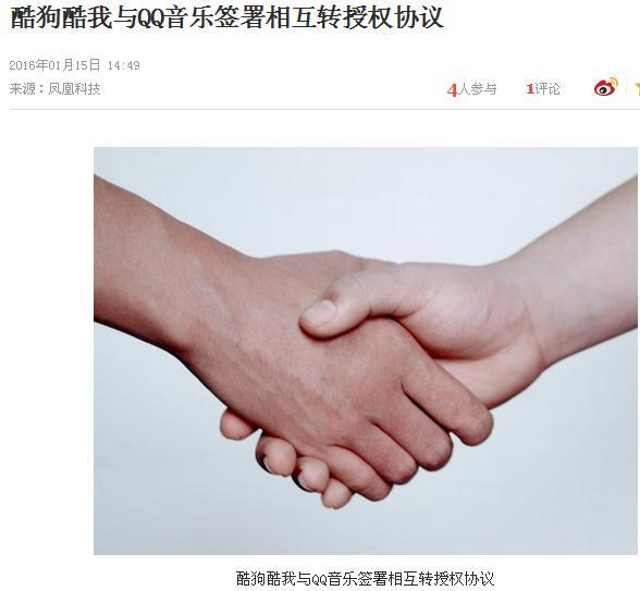 作为资深歌迷们应该都知道,今年的1月15日,QQ音乐已与酷狗酷我签署了相互转授权协议!也就是说这两家现在也算是合作伙伴关系!