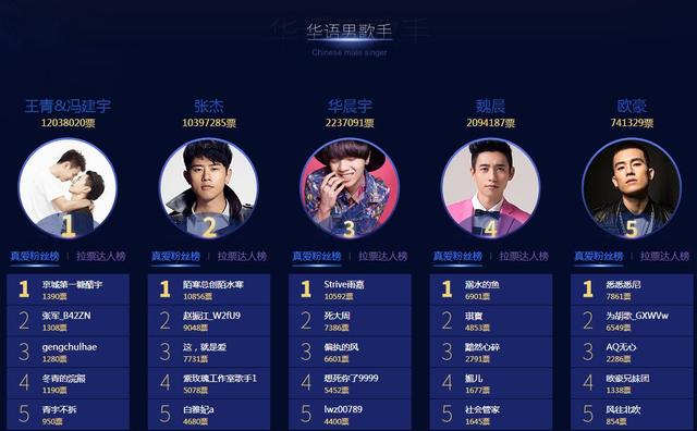 华语男歌手(圈姐没明白目前最高得主为什么是王青&冯建宇)