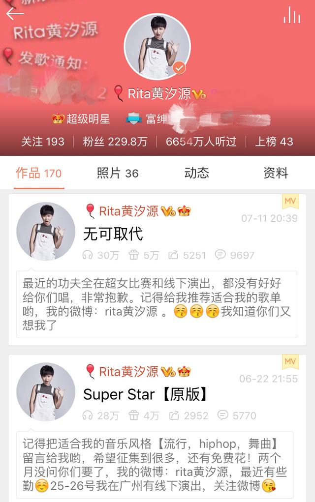 可以说,黄汐源没参加《超女》前就已经有数百万歌迷了。