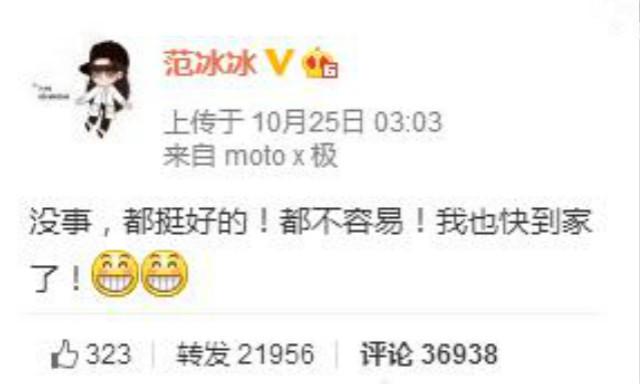 还记得上月底女神在武汉为电影做宣传遭劝离的风波吧?当大家都在纷纷议论孰是孰非时,心大的范冰冰在半夜为了安慰粉丝发了条微博。