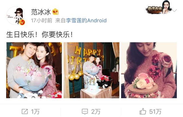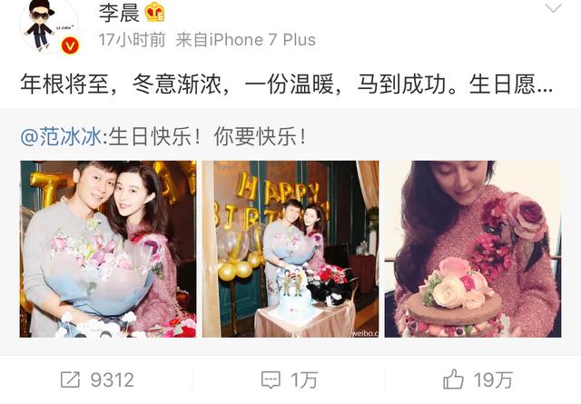 今天是李晨的生日!女友范冰冰第一时间在微博上为其送上了生日祝福!