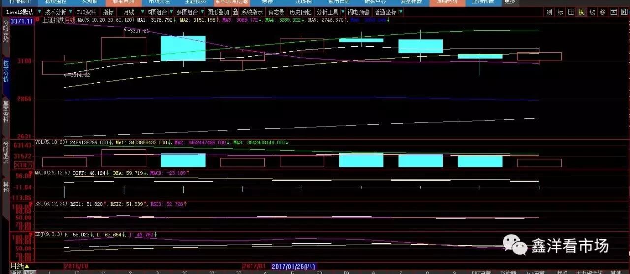 另外下周就要收月线了,上证50指数和沪深300指数的月线图上MACD已经金叉了,显示提前进入到了月线级别的行情周期里,这也是最近白马股和蓝筹股表现出色的重要原因,也就是它们提前进入主升浪了。而上证指数目前的情况是月KD和MACD都还没金叉,这叫说明大部分的股票还没进入到主升浪中,但是这并不说明大多数股票就没戏了,相反的一旦上证指数有效向上突破了3301点,那么也许大部分股票的超跌反弹主升浪也会开始,只是这种局面必须得到天时地利人和的配合,尤其是管理层的态度,如果还是市场行政干预太多,只许国家队股票持续大涨,不许别的股票大涨的话,那么扭曲的计划经济市场就充满了太多的变化无法判断了。