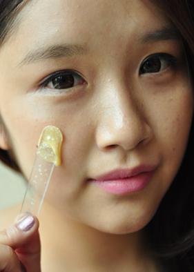 将维生素e和蜂蜜涂在脸蛋的斑点处,不必涂得太厚,涂得密布一些即可。用完之后,10分钟后用洗面奶清洁一下脸部。