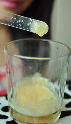 取用蜂蜜一大勺,维生素e小半勺。
