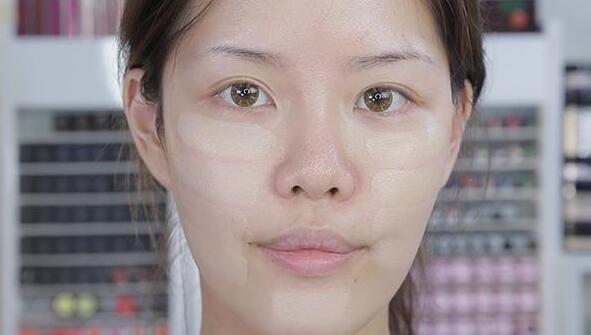 STEP1:打底,挤适量的粉底液均匀抹在皮肤上,最好是遵循少量多次的原则,这样出来的妆效才自然
