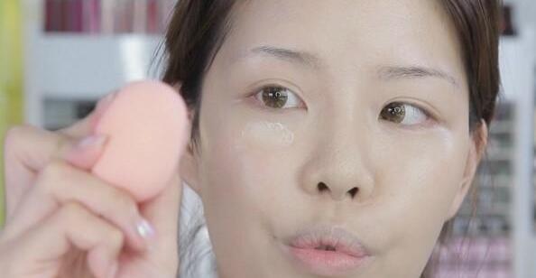 STEP5:用海绵沾取遮瑕液,对眼睛下方的黑眼圈进行遮盖,一样遵循少量多次,手法一定要细腻,不要来回搓,很容易导致细纹的哟