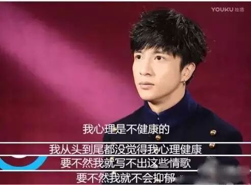 他说:我心理是不健康的,我从头到尾都没有觉得自己心理健康过,要不然我就写不出这些情歌……