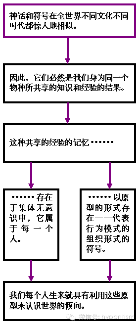 在荣格看来,共同的神话和符号是这种无意识的一部分。他认为,符号存储在可遗传的记忆里,世代延续,在跨越不同的文化和时代时稍有修改。这些遗传而来的记忆以符号为媒介浮现在心灵中,就成为荣格所说的“原型”。