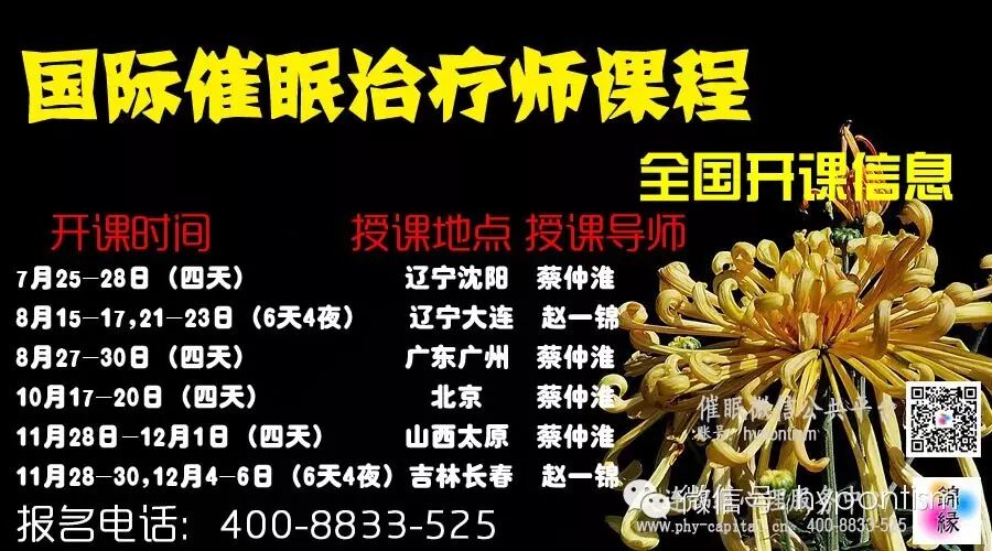 回复“催眠”——《国际认证催眠治疗师课程》全国开课信息