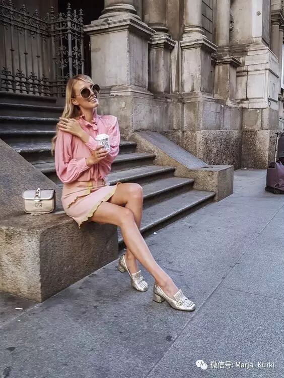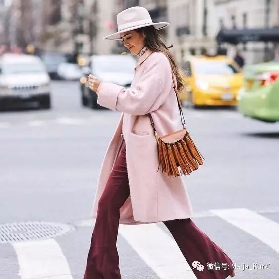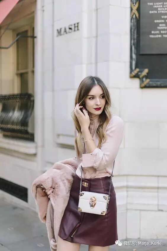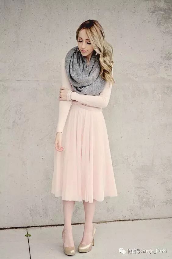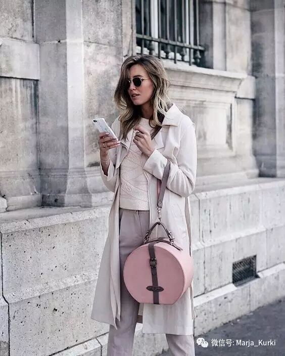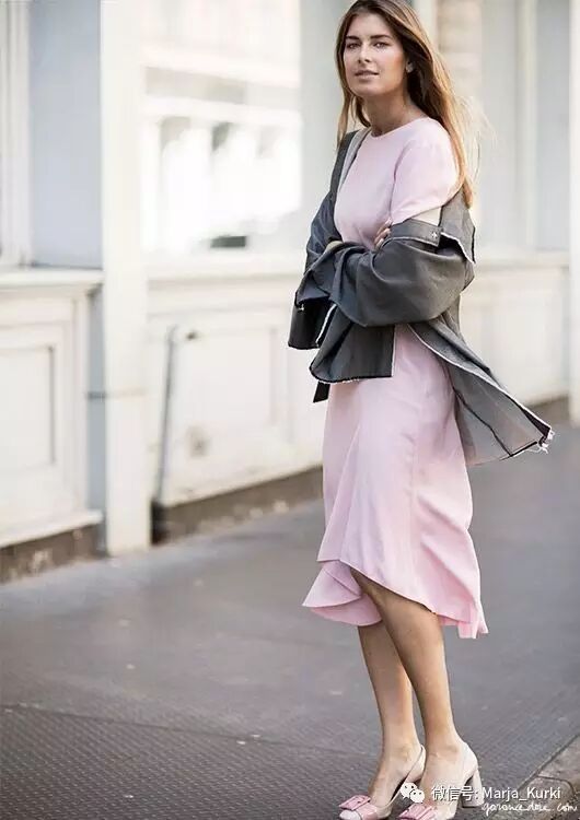 如果你不喜欢大面积粉灰碰撞,可以用小面积搭配!粉包包搭灰衣服,或者是灰围巾搭配粉色连衣裙都能让人过目不忘~