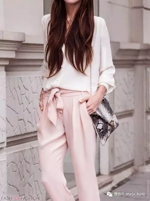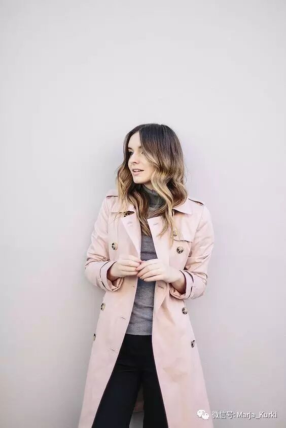 如果你是一位商务知性OL,不妨尝试下粉色风衣配黑裤,或是粉色衬衫配黑裤。从此你就会知发现这么“娇嫩”的颜色也有强硬的一面。