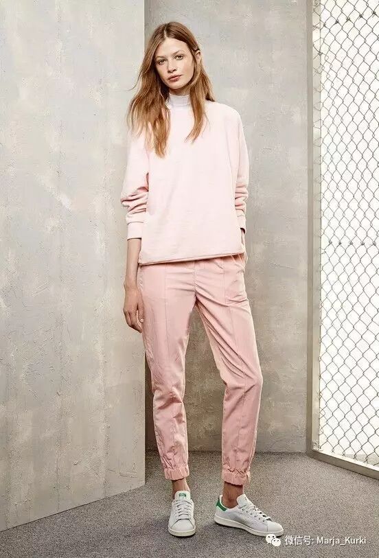 如果你是一位率性女孩,oversize粉色卫衣搭配粉色休闲裤和小白鞋,自然帅气中又能衬托你的肤色~