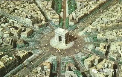 从巴黎上空俯瞰,以凯旋门为中心,12条大街向四周辐射,气势磅礴。