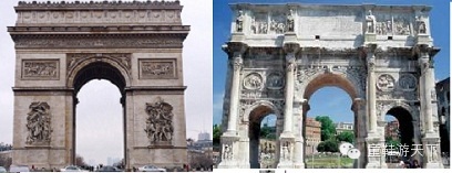 凯旋门以古罗马凯旋门为范例,规模更宏大。这座凯旋门高50米,宽44.8米,厚22米,中心拱门高36.6米,单一拱券显得简洁庄重。