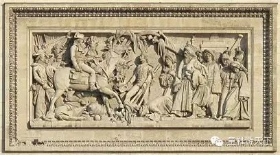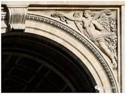 凯旋门门楣上有左右两个花饰浮雕: