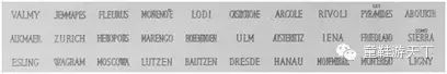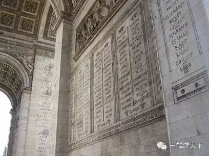 凯旋门门楣上刻着拿破仑指挥的96场胜仗名字: