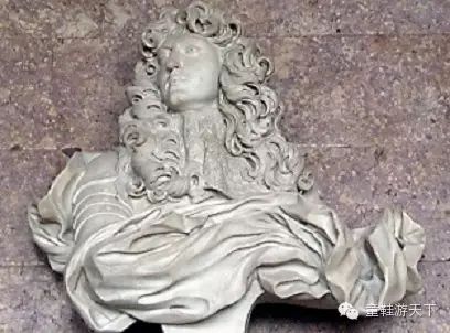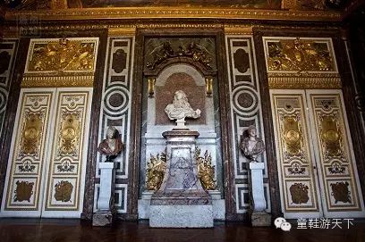 大厅正面墙中央有一尊《路易十四半身像》,这是意大利雕塑大师贝尔尼尼1665年的作品,这位大师去法国原打算为卢浮宫设计东部建筑的正面墙,却被路易十四拒绝,只留下了这尊路易十四的半身塑像,当时的路易十四27岁,已亲政了几年。